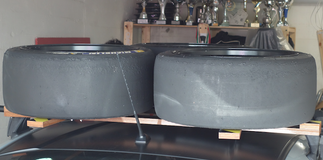 In order to get to our slalom events I sometimes need to carry 8 wheels since the conditions may vary (dry & wet).