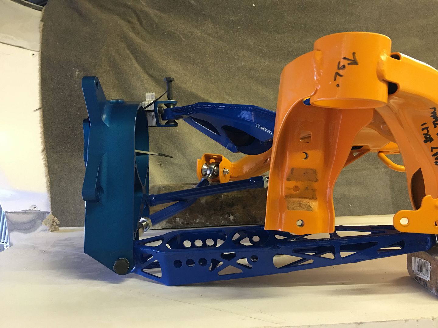 As a teaser, here's a pic of the left side set up on the bench. Believe it or not, this is how it sits with a drop of around 40mm.