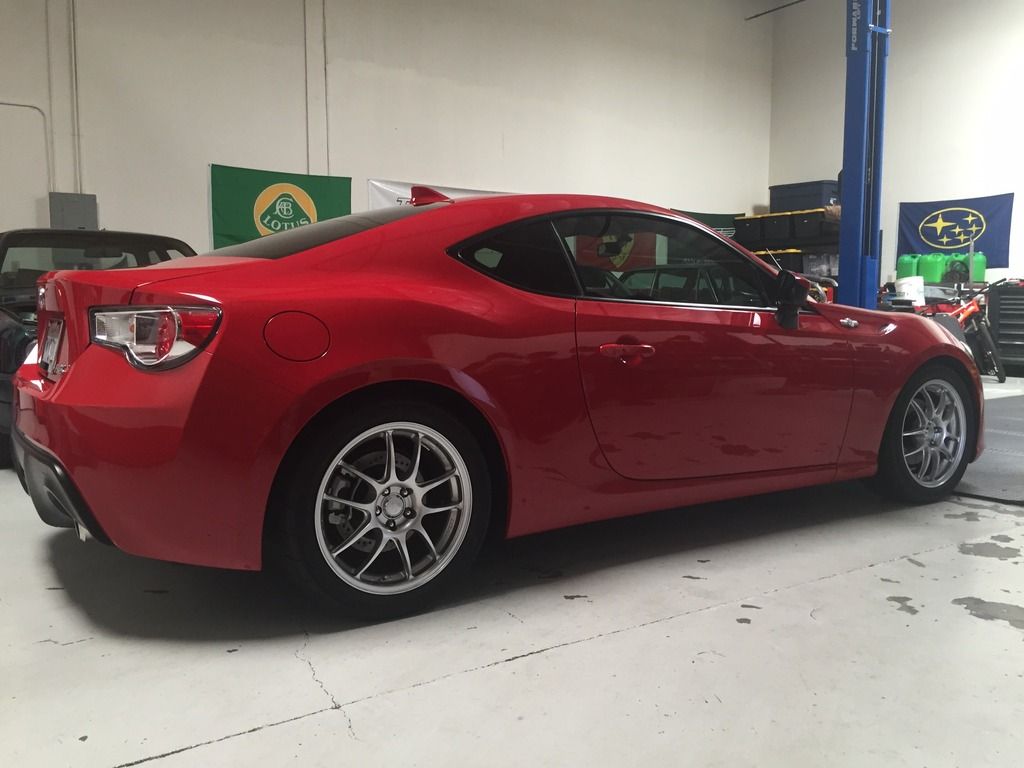 The car showed up here with just a set of TSW wheels and Michelin PSS tires, and left with: -Jackson Racing CARB legal supercharger system -Jackson Racing Radiator/Oil Cooler Combo -Perrin Performance 2.5" Resonated catback exhaust -Perrin Performance Steering Rack Lockdowns -Prova D Alcantara Steering Wheel -JPM Coachworks Shift Boot -JPM Coachworks E-Brake Handle Boot -JPM Coachworks 1-Piece Dash Trim -Stoptech 309 Street Performance Pads F/R -Torque RT700 Brake Fluid -Motul Differential and Trans Fluit -MTEC Shifter Springs -MTEC Clutch Pedal Spring -SRP Gas Pedal -Kartboy Rear Shifter Bushing -Passport 8500ci Hardwired Radar Detector -Winjet Headlights (customer color matched Asphalt grey, and converted to OEM 10 series HID balasts) -Recaro Sportster CS Leather/Alcantara with Recaro sliders and Planted seat base -SPC Camber Bolts -Full Peter Morrison Clay/Polish/Wax Exterior and Interior Detail -Performance Alignment from Alignment Services in Walnut Creek ![]() ![]() ![]() ![]() ![]() ![]() ![]() ![]() ![]() Never a shortage of 86's here! ![]() EDFC Active and new Tein Flex A's for a 2016 BRZ with only 1500 miles! ![]() ![]() Quick clutch job for Johnathan's FlexFuel JRSC car! ![]()