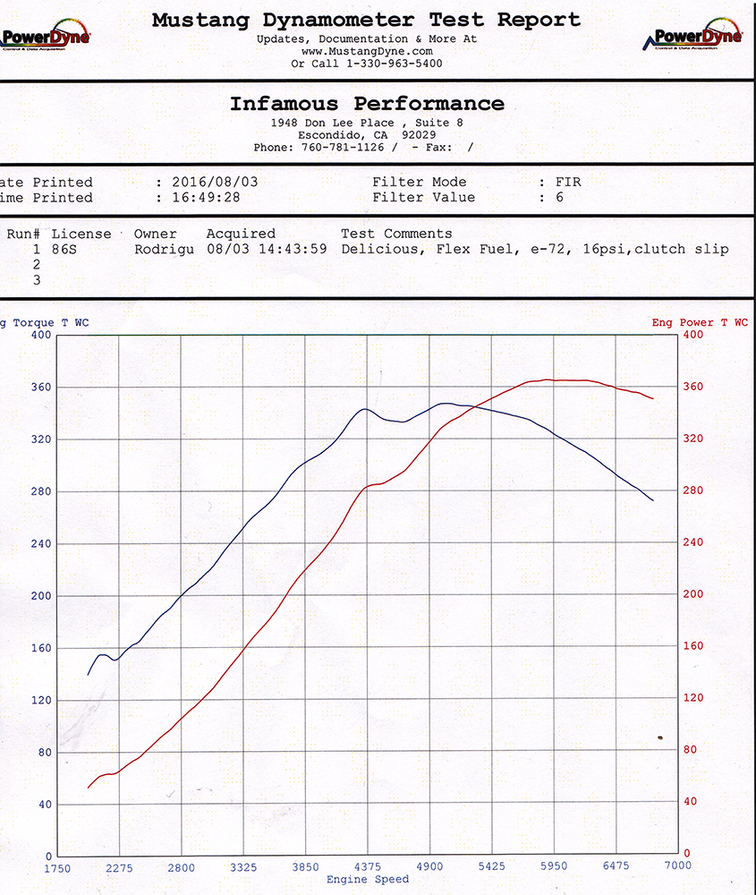I attached the dyno of what the car did even though it was slipping really bad in the high RPM's. Kit: JDL UEL single scroll Garrett GTX2867R @16psi e72 Tune: Delicious Tuning Engine/Exhaust:Outfront Motorsports Fully Built Closed Deck, JDL Full 3" exhaust, Tomei Type 80 Fuel mods: DW700CC, DW65C, DT Flex Fuel Kit Dyno whp/wtq: 366WHP/347TQ