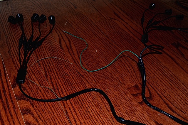 Here are some pictures. Got to love that color typo.... Essentially, it is three main lines coming out of the one power box as seen below. The Red and black are obvious, but where do the Green, Brown, White, Yellow, and Gray lines go? I ALSO have the instructions in PDF format in high res if anyone can translate them from Japanese to English. Any insight would be greatly appreciated!