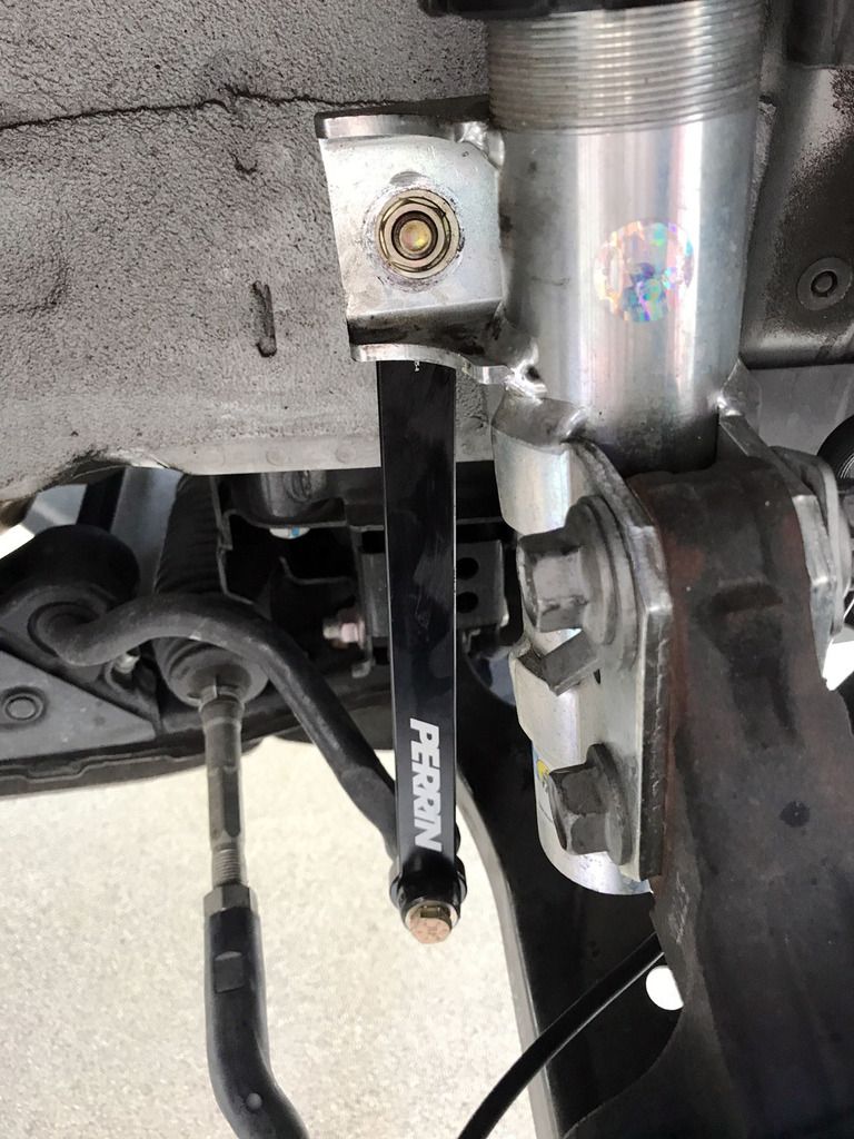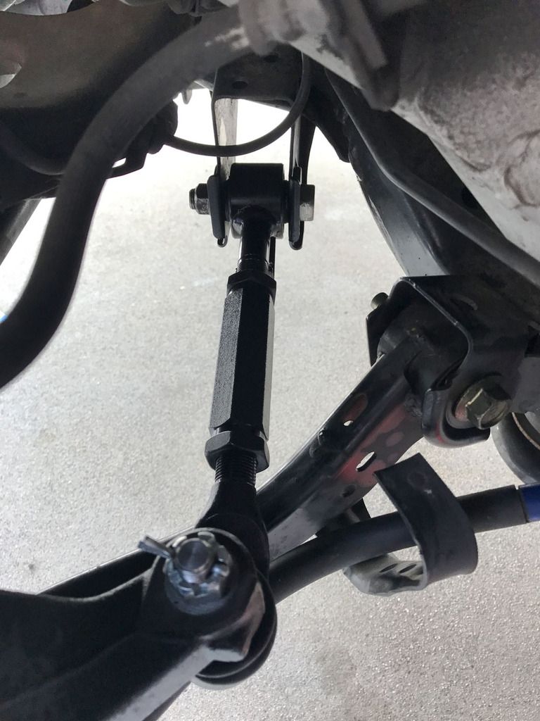 Installed SPC rear toe arms, so now I can get a proper alignment. Also decided to install my Perrin front endlinks, since I had it up on stands.