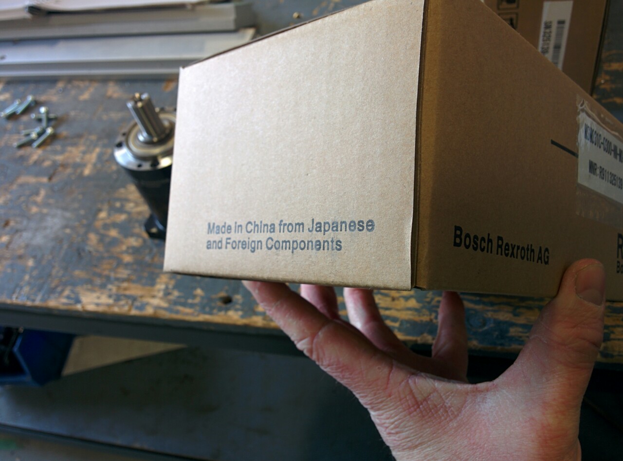 But my personal experience with a 'Kaizen blitz' at our shop is that a lot of these 'expert' efficiency consultants are fucking lazy retards, and management is complicit with the half-assed (1/64th-assed) implementation to get their kaizen or 5S stamp/certificate. I was one of the members of the 5S committee and read up on the concepts independently of what our consultant was teaching. Great. High value to implement into out machine shop. Would markedly improve production efficiency. But none of the fucking core concepts were properly implemented. And no-one listened to my recommendations despite us floor grunts being invited to share ideas as part of the program. Ridiculous. And for reference our site is the most efficient out of over a dozen brands in a manufacturing branch of a billion dollar holding company. And we are the number one or two position in our field in the bloody Western hemisphere. It baffles me to think that we are considered an 'industry leader' with the way the shit-show is run and makes me wonder about other 'professional' companies... Oh, and an interesting label on the packaging of some Bosch servos for a machine I'm putting together. Translates to: "We have to honestly disclose the country of origin, but it's not a piece of shit, really!"