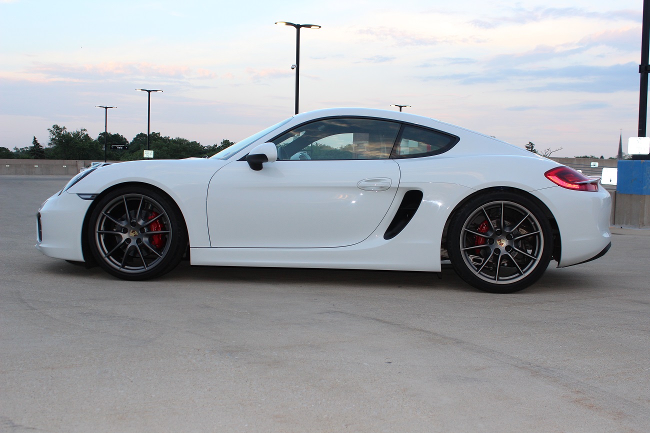 2014 Porsche Cayman S - 981CS. CPO until 4/29/2019. Approx. 10,220 miles. White exterior, black interior. Following optional equipment: sport chrono pkg, sport design steering wheel, sport seats plus (2-way), 20" Carrera S wheels with painted Porsche center caps, wheels painted platinum satin, guards red seat belts. Additional original and aftermarket equipment: GT3 front lower control arms with solid caster puck, 991 GT3 front sway bar (3 position adjustable), Tarett Engineering 5-position adj. rear sway bar, Tarett adjustable droplinks front and rear, Bilstein PSS10 coilovers, motorsport front brake caliper stud conversion, Porsche 991/981 clear LED corner markers, 7mm wheel spacers all 4 corners with longer lug bolts, Weathertech floor liners (black). Setup: weight with 180 lb driver and 3/4 tank - 3,231, corner balanced within 1 lb. Alignment -2.5 camber front, -2.0 camber rear, 0 toe front, 1mm toe in rear each side. All original suspension components will go with the car, as well as the original amber corner markers. The carpet floor mats still have the plastic covering and also go with the car. I can send additional pics upon request. Best regards, Kyle Last edited by KRC 9; 07-16-2017 at 12:22 AM. Reason: Price change |