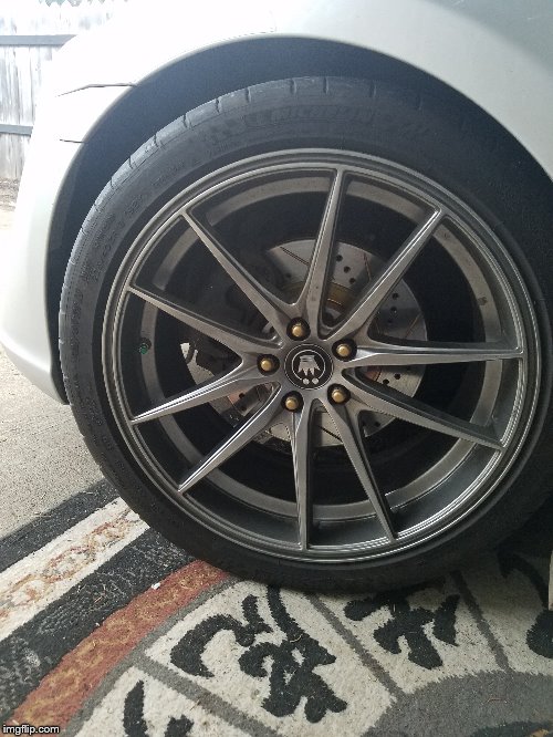 Put a few miles on the new brake pads and rotors. They squeaked at first till the anodizing wore off. They feel better than the completely worn out stock pads. Guess that's not saying much. Anyway, I think they look good. The camber bolts I installed are maxed out in the front, which changed the steering feel. It now feels "touchier" in a good way.