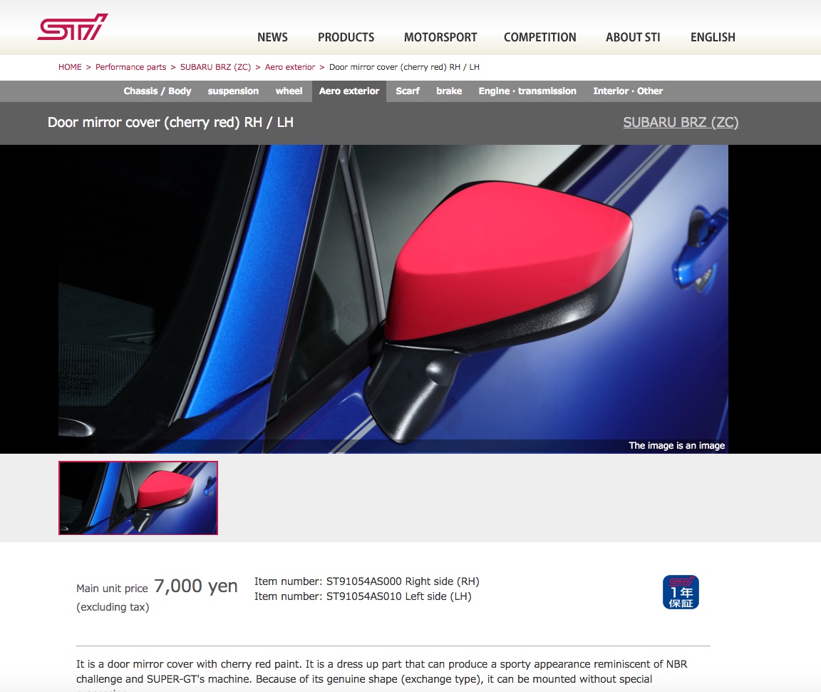 I think I’d prefer something like a pinstripe that crosses the middle of the side mirror to match the stripe on the front and rear bumper of my tS. The whole cap being Cherry Blossom just is a bit too polarizing (coming from the guy with a giant STI Carbon wing on the back haha)