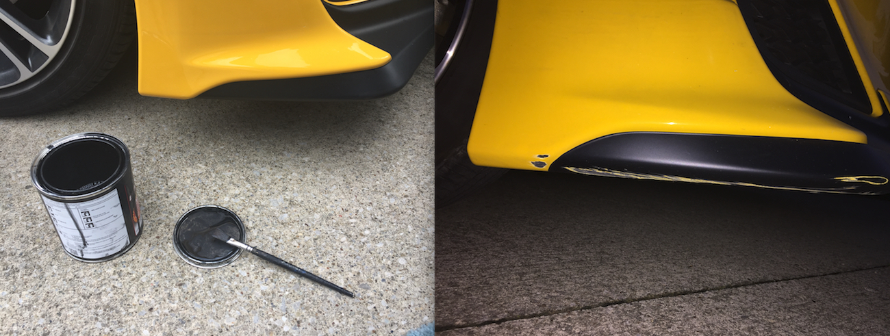 I got some touch up paint for the yellow and used SEM bumper coat I had left over from a car I'm restoring. Rather than spraying it, it looked fine with brush application. |