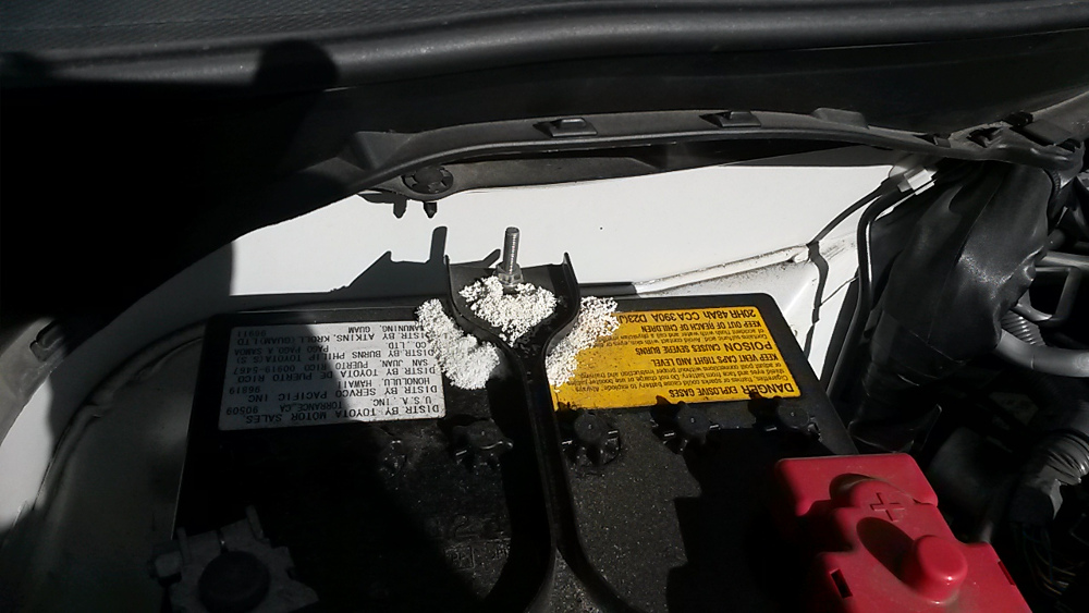 Finally warmed up enough to do something about it yesterday. The shop vacuum managed to pick up most of it that wasn't trapped under the strap. Pulled the battery and scrubbed everything down with baking soda to a fairly good surface. Only a little flash rust before two coats of satin black Rustoleum. The sunroom made it up to about 80F so it dried pretty quickly. Got a new NAPA battery just because. The 6 year old Panasonic developing incontinence did not give me good feels.