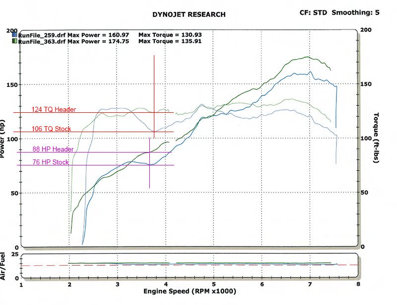As I frequently point out, much like an aftermarket CAI, changing the headers in these cars has a very limited effect on performance. Unlike changing out an old school flat (and usually rough cast iron) exhaust manifold on the family sedan there just isn't that big of an improvement in flow. The stock designs are already built for performance.