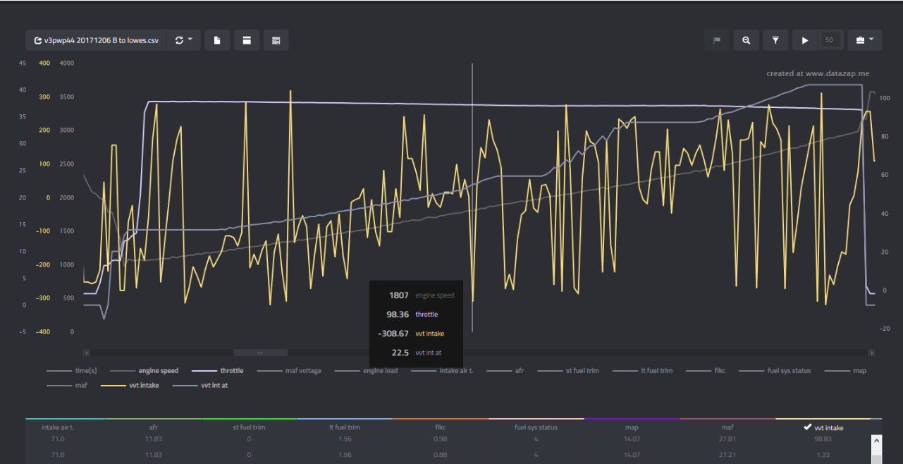Any suggestions? Should I just use "vvt int at" as the current intake angle and ignore whatever "vvt intake" is trying to present? https://datazap.me/u/baront/log-1512...4&zoom=510-731 |
