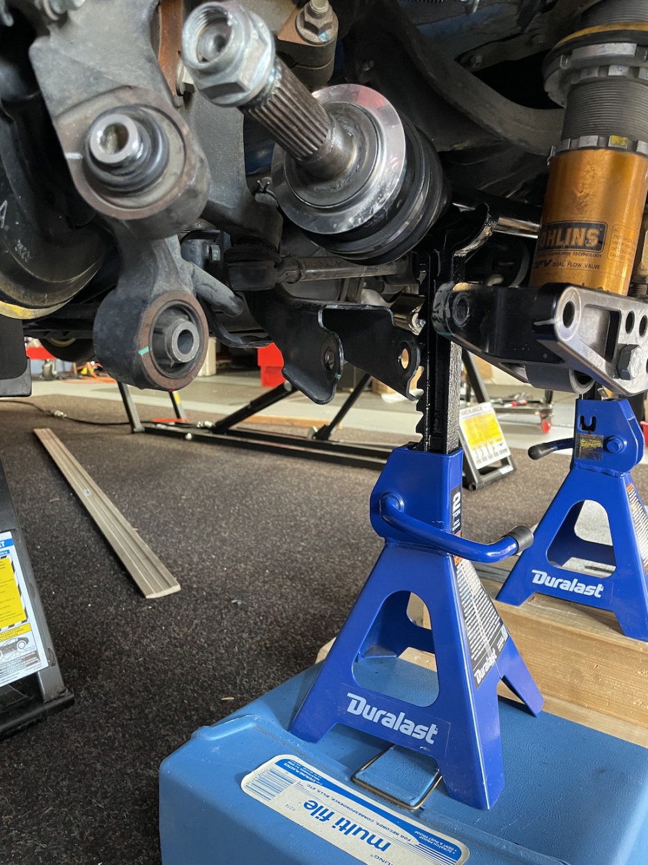 I extra jack stands so I used those to support the new axle in a straight line while tapping it into the diff and then wresting the outer edge into the Hub.