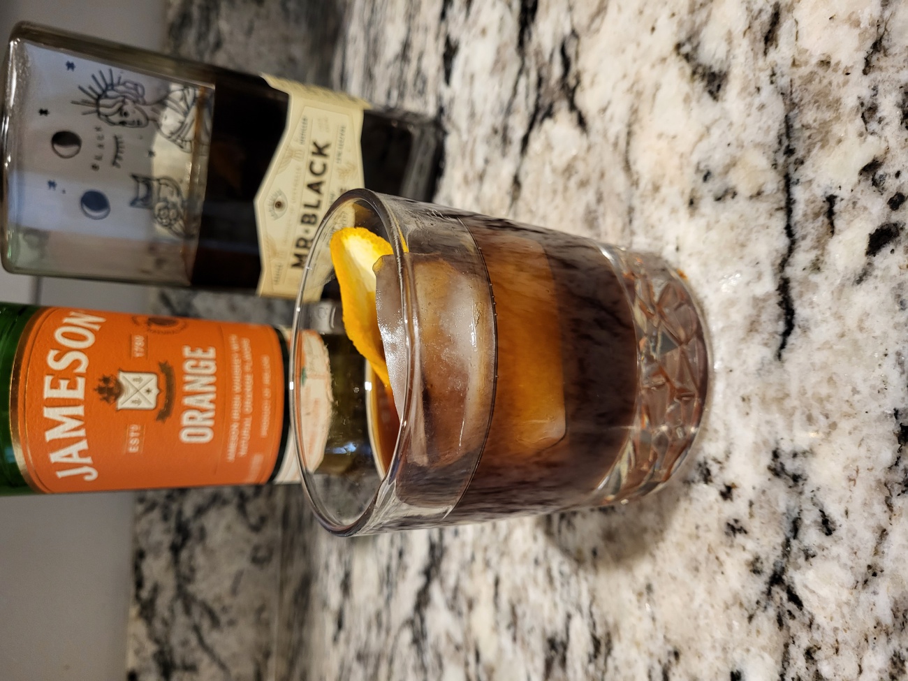 So hitting the watering hole pretty good tonight. Drink of the night is a coffee'esq old fashion! 2oz Mr. Black liquor, 2oz Jameson Orange, splash of simple syrup and an orange peel to finish. Not an every day drink but, pretty damn good on a cold night.