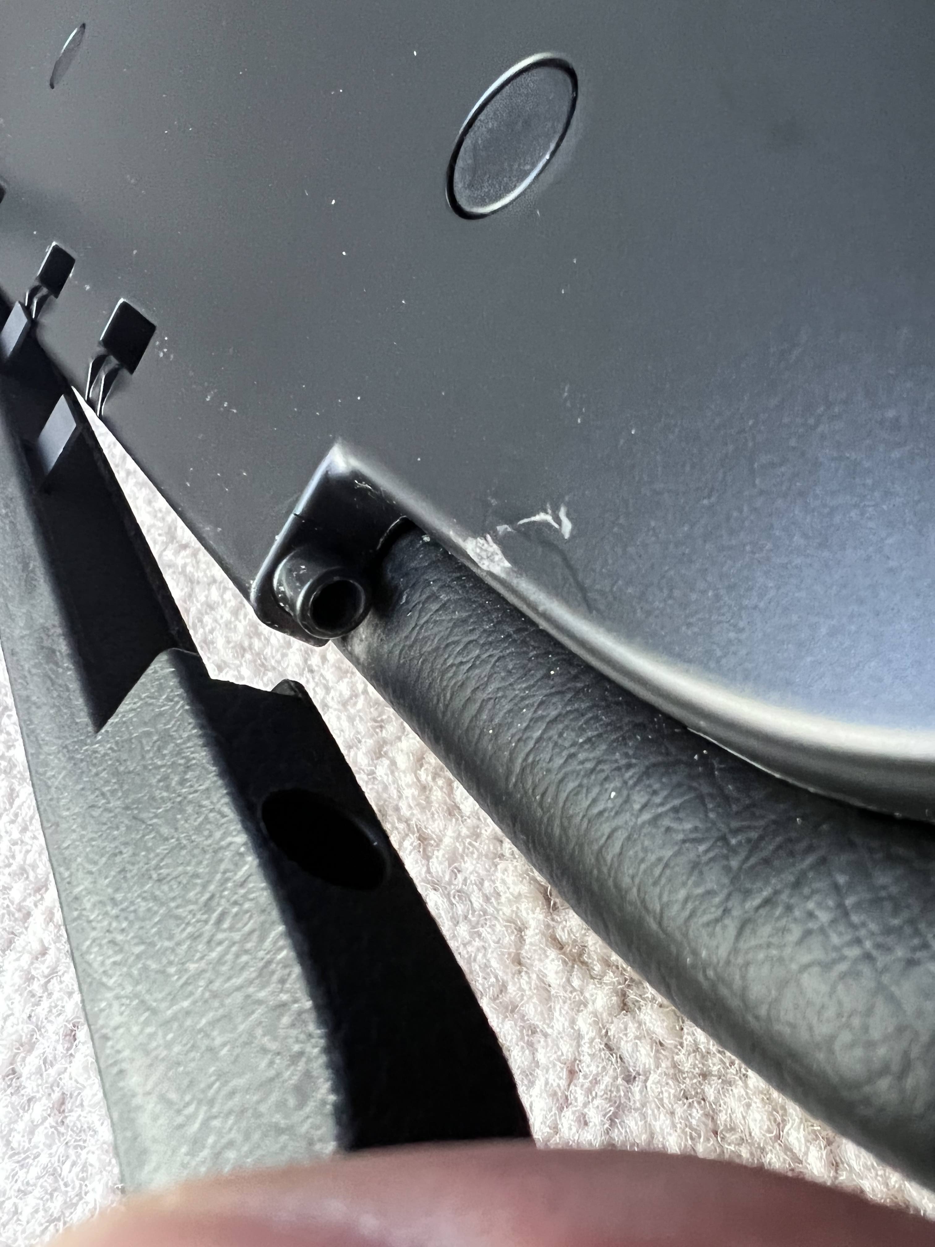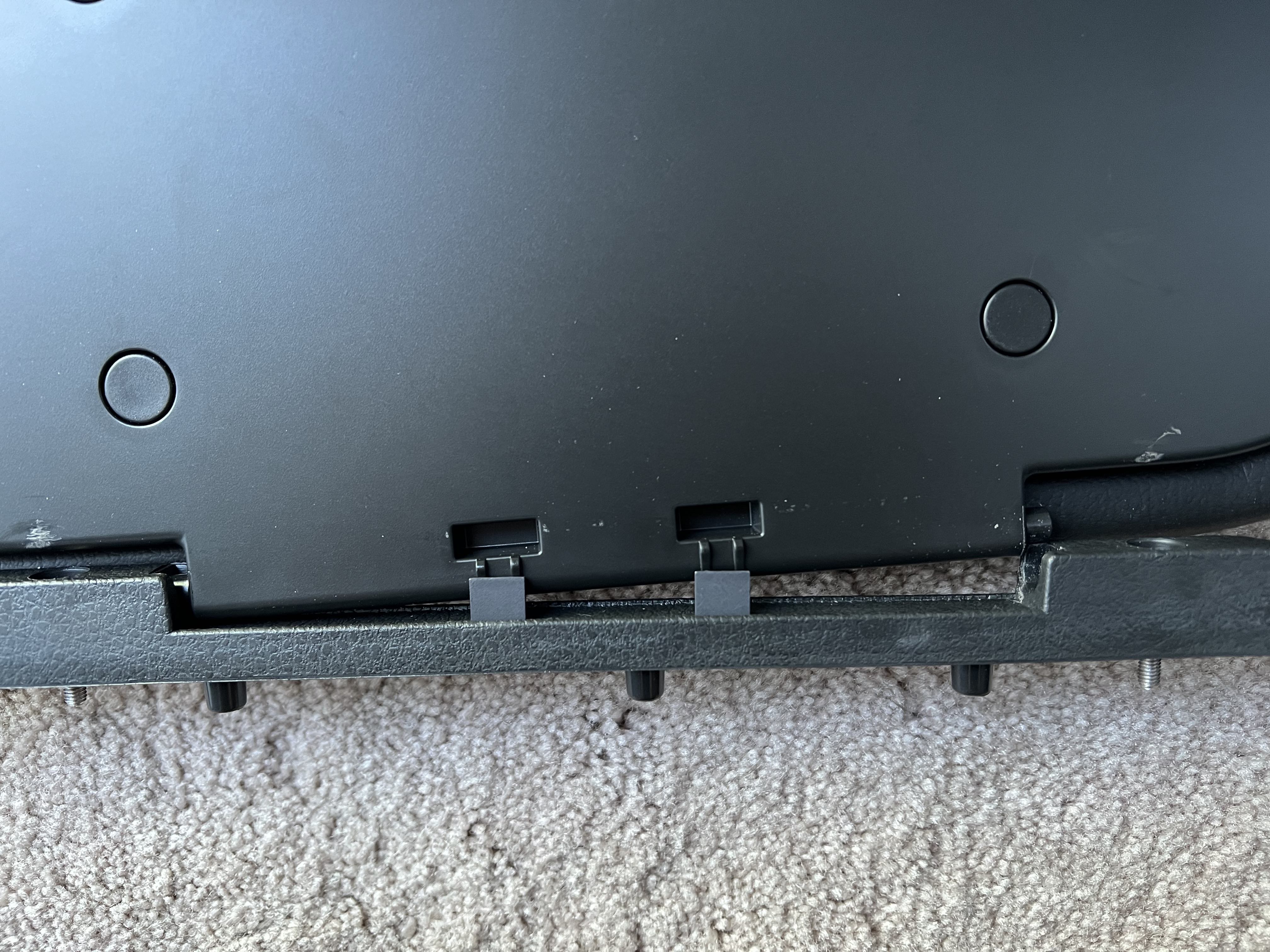 Hello - I just bought a brand new Toyota armrest to replace my 8 year old broken one. Installation was a breeze since the holes were already drilled for the old armrest. I have noticed over the past few weeks that every time I open the arm rest, the rear "hinge" pops out of its guide slot. Am I missing a part? Is there something that is supposed to keep the rear hinge captive like the front hinge? I can push it back in place while I close it, but it pops out every single time I open it. The mounting hardware is barely snug, so I don't believe it's warped or anything.