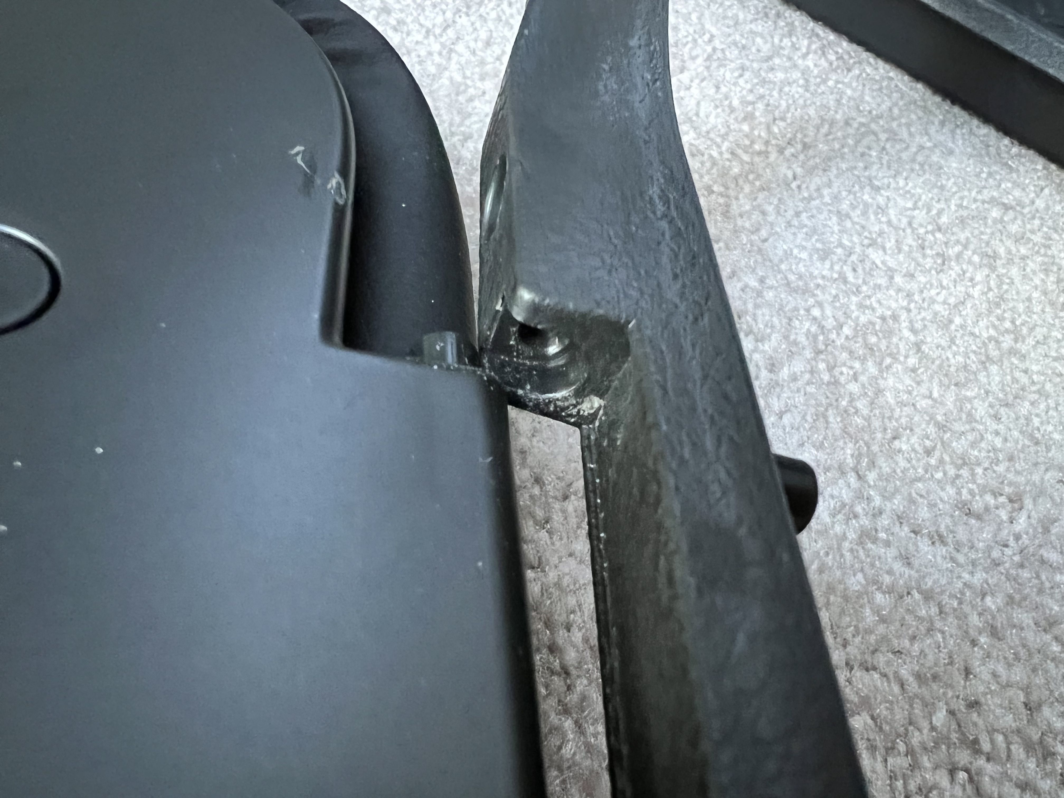 Pin was loose, but mine was actually caused by the plastic sleeve around it cracking. I ended up using a liberal amount of JB Weld plastic bonder from the inside to repair it. The other side was fine, but I added the plastic bonder there to beef it up just in case. Been solid ever since. |