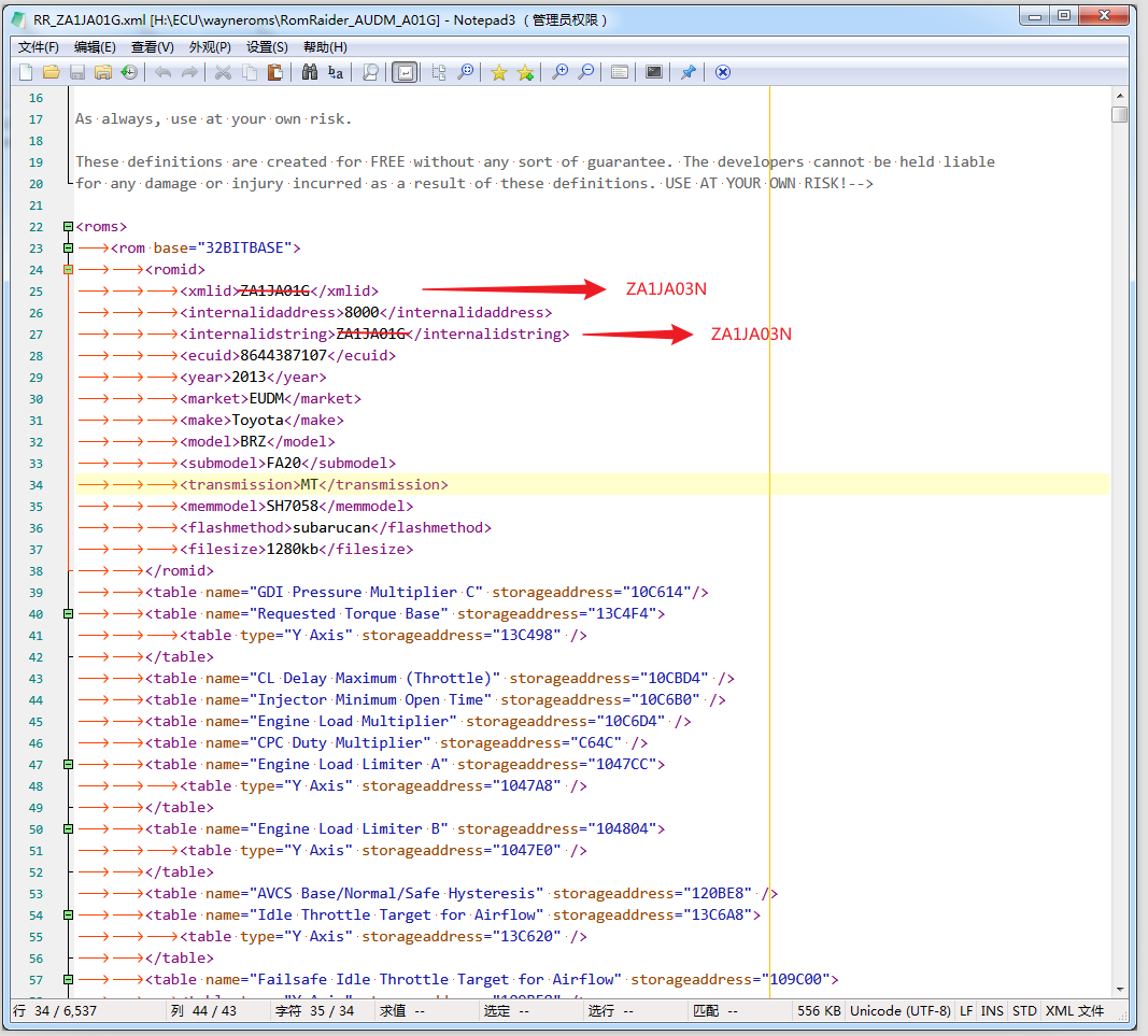 I found ZA1JA03N my RomRaider Editor Definition is incomplete. Searched the forum and there is no, only ZA1JA01g. thanks. |