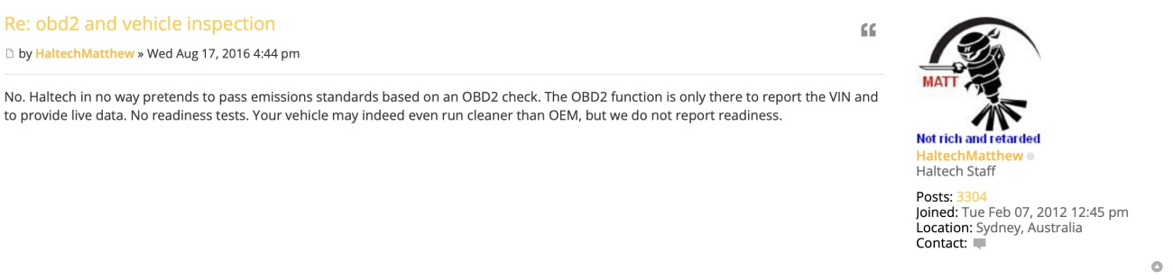 But I think you are just confused because of my comments about coal rollers. The EPA, as I understand it, wasn't going after this company for selling off-road modifications that people use on-road like Kpower or Haltech. The EPA was going after them because they were selling tuning software that fooled emissions systems specifically for smog tests just like VW did. They were making products that were intended for on-road use. My Kpower kit and Haltech ECU does not fool emissions computers (see below). Yes, what VW did was worse because the customer was in the dark, but ultimately, what they did was produce cars that produced 40x the NOx emissions than what the computers reported during the smog assessment. Do you get the problem with selling on-road use emissions defeating software and having tutorials on how to remove emissions components, and then ignoring the EPA's requests, and then in spite of the investigation, selling as much inventory as possible? These guys are just idiots.