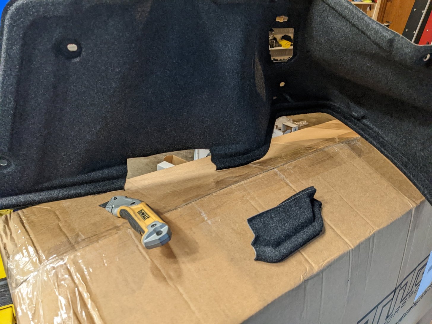 Changed my mind and decided to put the carpet back. OOPS! The Tirelief ports are interfering with the brake caliper! I will have to get them removed ASAP.