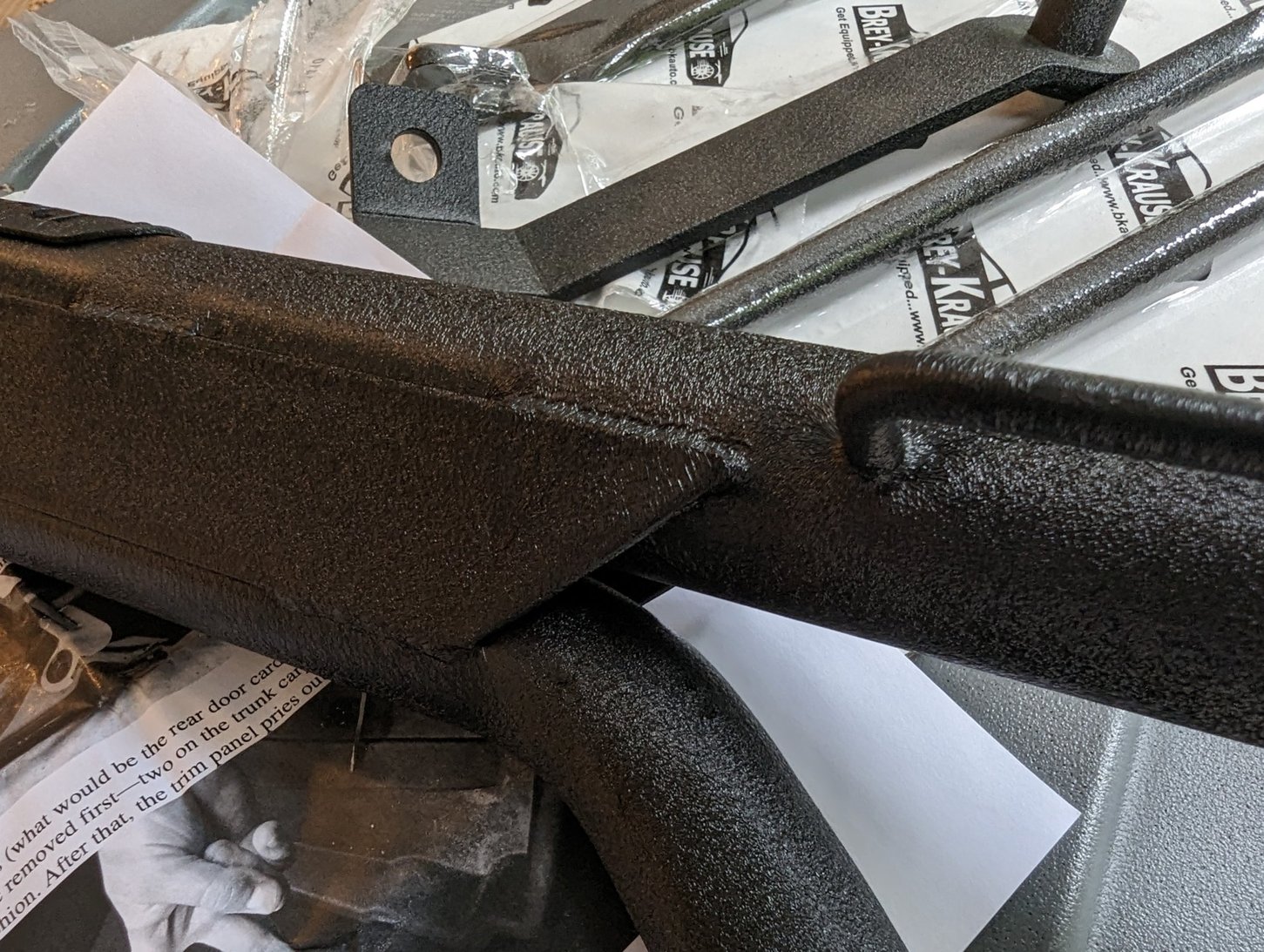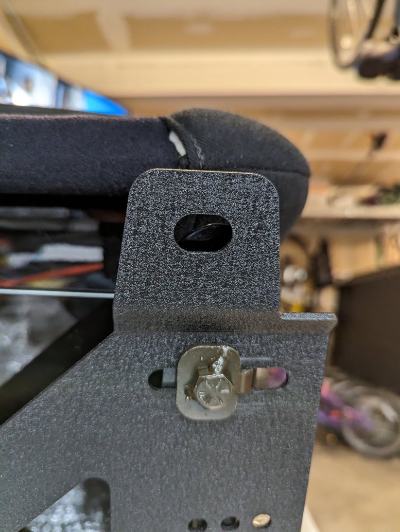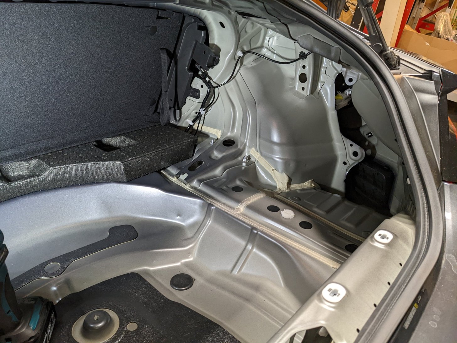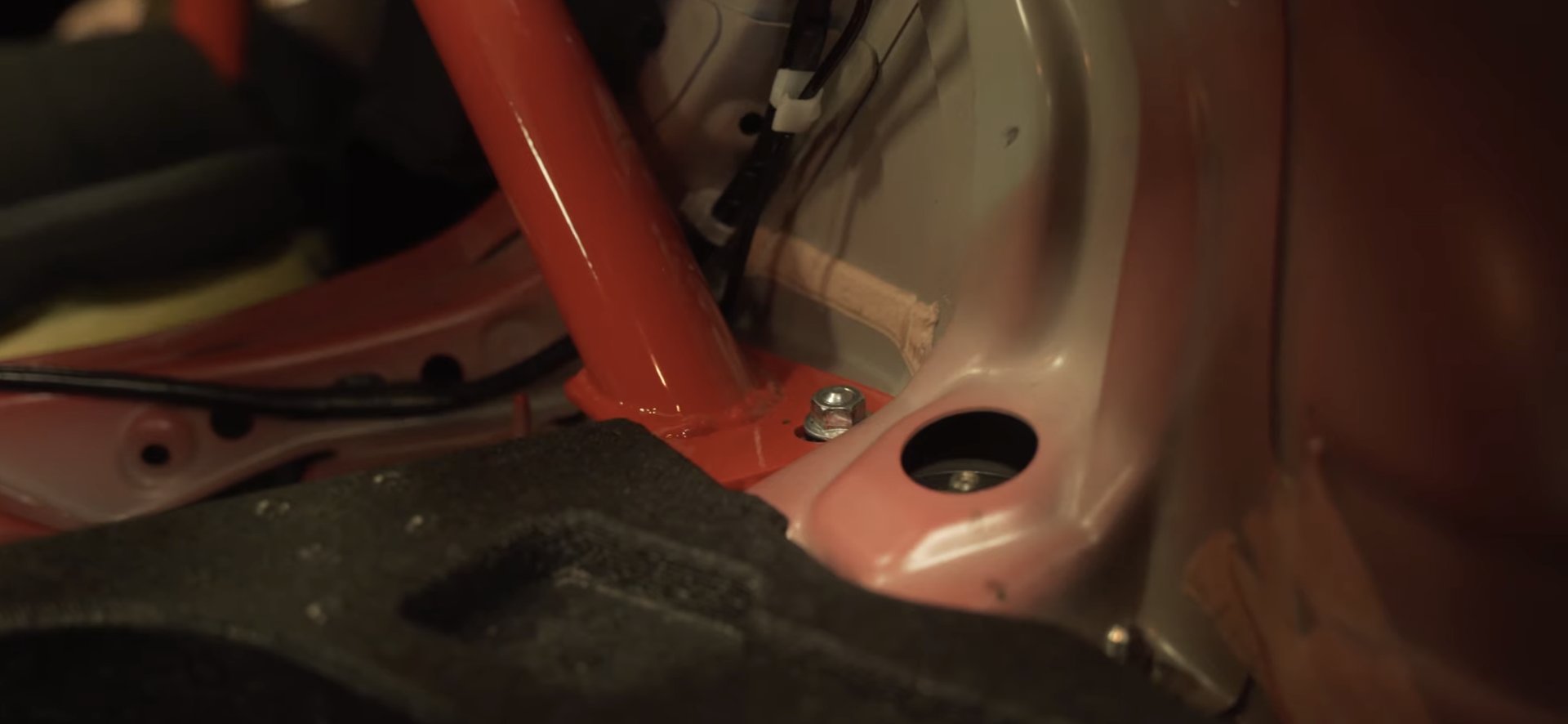 Much more roomy with stuff removed : ) Also had to remove that top cover. Apparently, TPMS unit is there. How it looks with the Titan half cage in. It has a nice wide footing that is snug to the floor. That said, it's not bolted by any means to the floor. This is common to RSR half cage, too. There is a nice boxed cross-member right by where it connects, but the actual bolt location is for child seat top anchors; they're not crash rated like the seat belt bolt locations. Also, the strength of that boxed/reinforced section is also suspect. The seat belts would be yanking on these two bolts all day. FYI, they're standard size to my surprise: 5/16-18 coarse tread. This is the rear mount of the RSR half cage; it connects to inner bolts of the shock towers. It's better in a way, but also not great. It comes to the shock tower bolt at a pretty steep angle. Thankfully, I do have a subject matter expert here in PNW, Doug, owner of Chase Race, and asked about these designs (Titan and RSR): Quote: