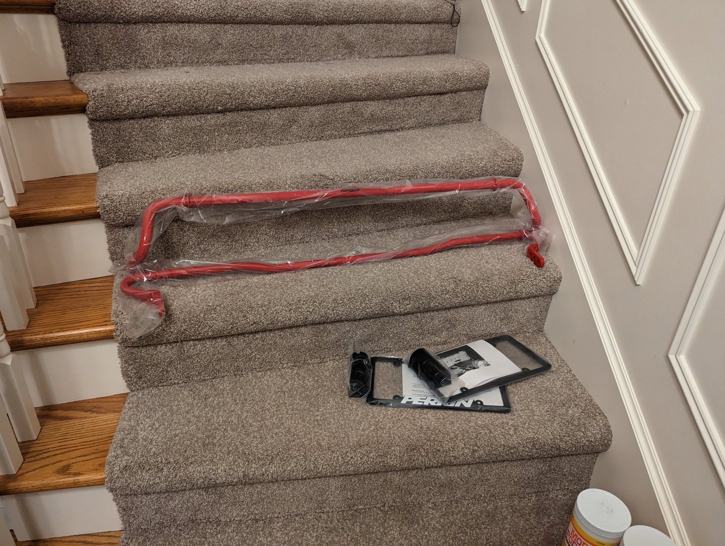 Hit a cone, which miraculously made a lot of damage. I asked a friend who owns a collision shop how much it would cost to properly fix, and 'sort of' fix it... Looks great with the APEX wheels Sourced 22mm and 19mm Front / Rear Perrin sway bars. They have given me store credit for the tow bar that failed, which I've used to get the bars. I plan to only use the front for a while as I've mentioned before, but will definitely experiment with upgrading the rear as well at some point. Having much stiffer sway bar on one end twists the chassis, or loads up one side of the car in long turns, and I'd love to see what happens when the rear also gets a bit stiffer sway bars... Sourced spare rings from here and here. (Bolt kit). It was the cheapest I could find. BK harness bar will be delivered, tomorrow. I'll install the seats and the bar, soon : ))