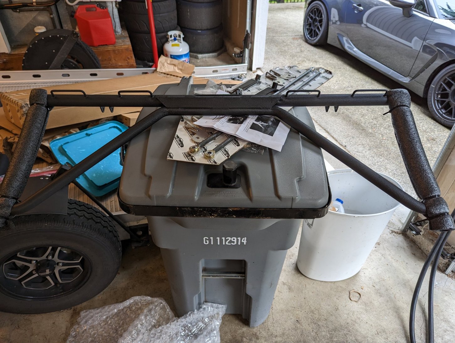 Finally picked up and installed my tire rack onto the Futura trailer. It looks nice, and would probably work well for the BRZ tires, but not sure if it would work well with Corvette wheels (since front and rear tire diameters are not the same). I also plan to tape around the center lock bar so it would not scratch the wheels, but I should also not make it too thick, which would make it impossible for me to slide the bar out when needed. Oh well, I'll try next it out next week ![]() In other news, my Titan harness/roll bar is shipped! I have corner-balancing / alignment scheduled for 10/13, so I plan to install everything by then..