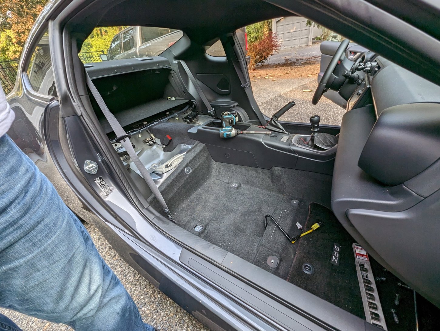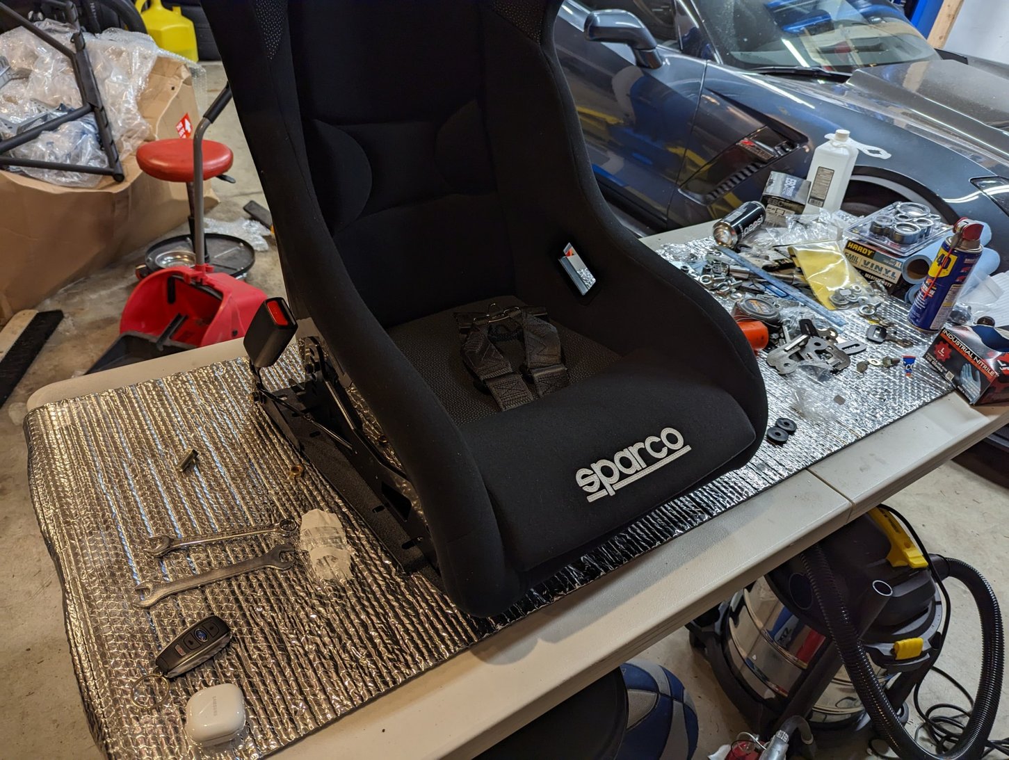 BK harness bar with its packaging. Overall kit weights about 18.5 lbs (not 16 lbs advertised). The bar looks pretty stout, but I know that this kind of paint can chip easily with impact. You need to remove this whole plastic trim in order to install the mount adapter. Then you put it back without engaging the tabs, and hit it from the mount location to mark where you need to put a hole on. This tab also needs to be cut out. 1" hole.. I suppose you can put a sticker there when you remove the bar one day.. : P Trim back in its place. The rest of the bar install is trivial. The PCI mount uses a very flexible slotted design for the side mounts. It's great in terms of flexibility, but it is made way too long, and it interferes with the bolt holes to the chassis. PCI provides spacers to offset the side mounts from those bolt locations, but I was not able to clear the holes without having to compromise the seat location quite a bit. In the end, I used all 4 spacers provided on one side, which finally made it possible for me to get to a good spot! You can see the slider protruding into the bolt hole location... I also considered using Planted's aluminum side mounts to mitigate this issue, but the hole locations do not match. Planted products are manufactured by a local company here in Seattle area (425 Motorsports). It's pretty easy to move the seat belt from the OEM seat, and assuming you have something for the airbag light, this is the only other connector if you're only switching the driver seat. Here, everything installed. These lap belt mounts that come with BK bar are great! I've used all 4 of them that came with the kit on the driver side, and ordered 4 more for the passenger side. Here it is; finished! BK bar is very thick by the center. The regular GoPro bar mount was way too small for it, but I found something that worked. Final location. I had to offset one side a lot to be able to clear the chassis mount bolt holes, and even that, I had to move the seat a wee bit towards door from the center to make it work. PCI could easily avoid this by reducing that interference. The longest 35mm M8-1.25 bolts worked best with the spacer. The shorter 22mm and 25mm bolts pictured here barely had a thread after adding that spacer. I'm using Grade 12.9 bolts (OEM had 10.9), and they should be pretty stout. Don't discard the bag race seats come in! Next up is the front sway bar, and then the car is ready for testing. I've also ordered a second set of APEX wheels, and will mount my 245/40/17 Z214 tires on them as the spare set. There's a track day being planned (depending on weather) on 11/12-13, and the plan is to be fully ready by then. OEM Passenger seat 39 lbs OEM Driver seat 36.8 lbs OEM Rear seat total 25 lbs BK harness bar 18.5 lbs bar Sparco Evo L QRT seat 18.6 lb, 19.3 lb (seats weighed different). Sparco seats with mounts: 28-28.6 lb So, the weight is pretty much a wash. My corner weigh alignment probably stayed perfect : P