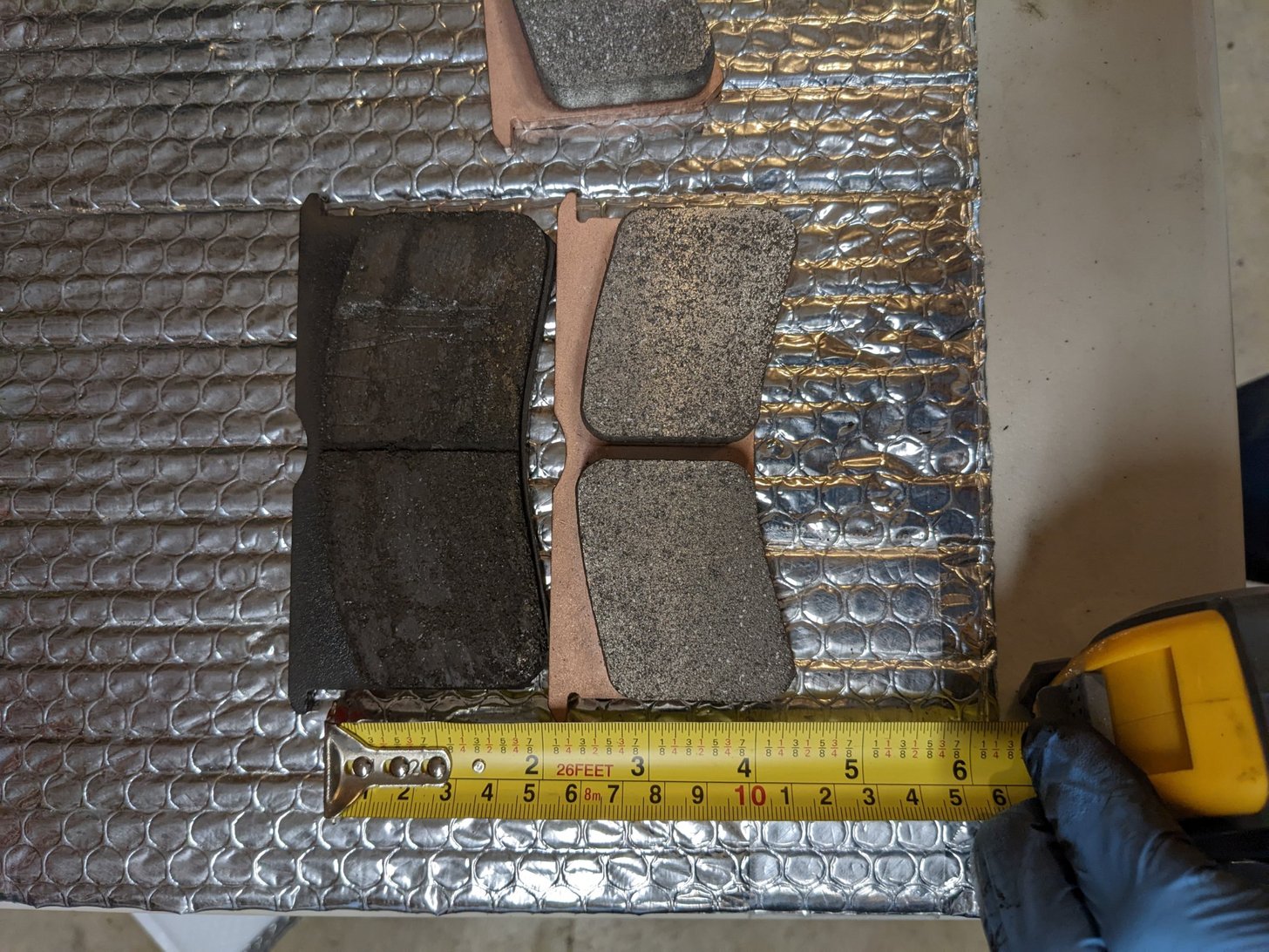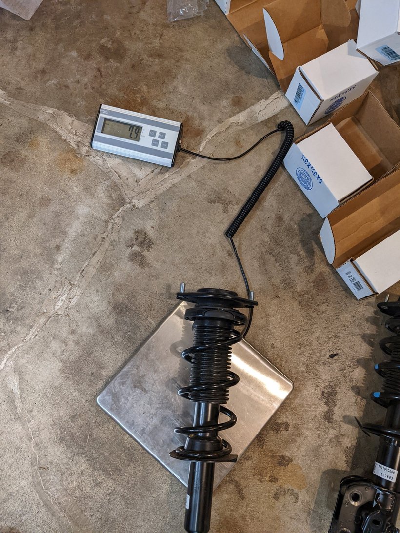 Karcepts provides excellent instructions (I really like it), but no pictures whatsoever except the camber plates, which I don't need a picture of : ) It's a bit overwhelming at first since it's easy to make a mistake. Just make sure you understand what they say. Examples: MCS bearing upper perch means the perch with a bearing in the center, which is what you use instead of regular upper perch. As such, if you get the camber plates, you'll have two extra upper perches that won't be used. Simple enough, but it confused me, since I tried to not have leftovers : ) there are spacers at 7.5mm, 10mm, and 20mm. MAke sure you measure them before you install. There's another 20mm spacer with thin adapter tip; that's to be used for the rear shocks' bottom mount. As you sandwich everything, make sure the upper perch is completely seated. You'll feel it when it does, and it will no longer sway sideways. All finished and pre-adjusted per instructions that assume 400/475 springs. Since my setup is 450/550, I made both ends a wee bit lower than suggested. The ride height target is 12.9" front, 13.1" rear, from hub center to fender. Since it's easier to measure from bottom wheel lip, I did measure from there and converted it to what they use. While at it, I also wanted to inspect the brakes. WHAT????? This is after just 2 track days? Something is either wrong with the car or with the pads. These were Ferodo 3.12 that I've tried for the first time. By the way, I'm so glad I have not purchased the spring BBK; I guess they'd just let me down during the last event! Anyway, replaced them with EBC SR21 sintered pads that people suggested are even better than Raybestons ST47s; we'll see! I will be checking on the brakes to see how they wear. There was also a bit of taper. SR1s only come with 43mm depth; oh well. The driver side was fine, which is adding to the mystery. Were the caliper pistons stuck on passenger side? Does the car apply front brakes in turn-ins in track mode? Rears were fine (Ferodo 1.11), but I replaced them (with Cobalt XR2s) for a fresh start. OEM front shock is 14.9 lbs. MCS 2WNR is 11.9 lbs with all its pieces. Make sure you follow the same route for wires, etc. Better yet, do one side at a time, so you'd have an intact reference : P Removed all the rear carpeting. You can see the rear hats. I could easily cut an opening, I guess; I'll decide about it later. OEM rear shocks are 7.9 lbs each. MCS are 6.2 lbs. You need to push it from the bottom while putting the nuts on from the trunk. I used a hammer as a spacer to keep it high. 5.5 lbs. RT660 225/45/17 vs A7 245/40/17. They don't look too different? RT660 is 46.4 lbs with OEM wheels, vs R7 at 40.5 lbs on Apex wheels. I forgot to check if it were front or rear wheels. With initial settings. Holy camber batman. Rears were close to target, but fronts were a bit taller than needed. Dropped the springs by another 10mm or so. The results is about 12.95" front, 13.25" rear. Also tested out loading all the tires into the car. Yep, it works, but not as nicely as I thought I could. ... and finally, from the rear. I'll drop it to the race shop tomorrow evening. I was going to install the race seats as well, but I got too tired to start that one. Anyway, looking forward to the weekend!