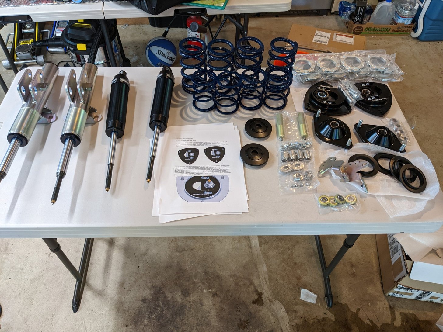 Here is the worksheet The result looks good! Apparently, I've hit more than 5 degrees of camber when I first installed them, so they're looking a bit less aggressive. I also made a small mistake and set the heights another 0.75" lower. Once that was also fixed, it started looking much better. Looking good : ) Loaded it up, and I'm ready for the weekend! I swapped fronts and rears, since the fronts were worn down quite a bit. With the rears now up front, and with -4.2 degrees of camber, I think it will hold up better this time. I'm all packed and ready for the weekend. I'm hoping to be patient enough to stay for both weekend days, this time, and if so, I am thinking about getting a baseline with my OEM wheels, and switching to my track set the next day. I'll also bring along my TPMS programmer, and will need to figure it out at the track. Looking forward to it!