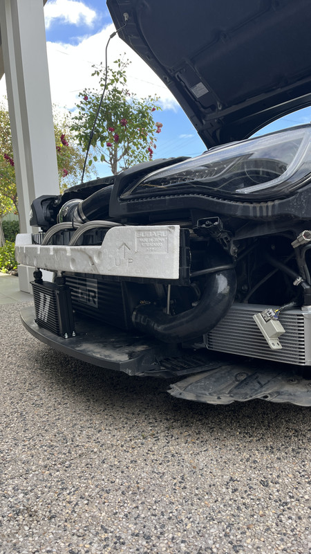 Intercooler is in the way of the bracket location of the cooler, and the cooler itself is quite tall and can’t fit under the crash bar because of the fittings. Mine is mounted as far front as possible which ended up being right behind the grille (touches it) with the bumper on. Could really go a few MM back for better bumper Fitment but will need to make an angled bracket for the cooler to do that. I’d suggest looking at the AVO oil cooler than mounts on the driver side behind the fog light. Lots of space they’re not taken up by anything. That’s where I wanted to mount my cooler but the mishimoto lines were only long enough for a front, centre mount Keep in mind bumper didn’t fit with placement in this picture, had to move it back about 3-4cm