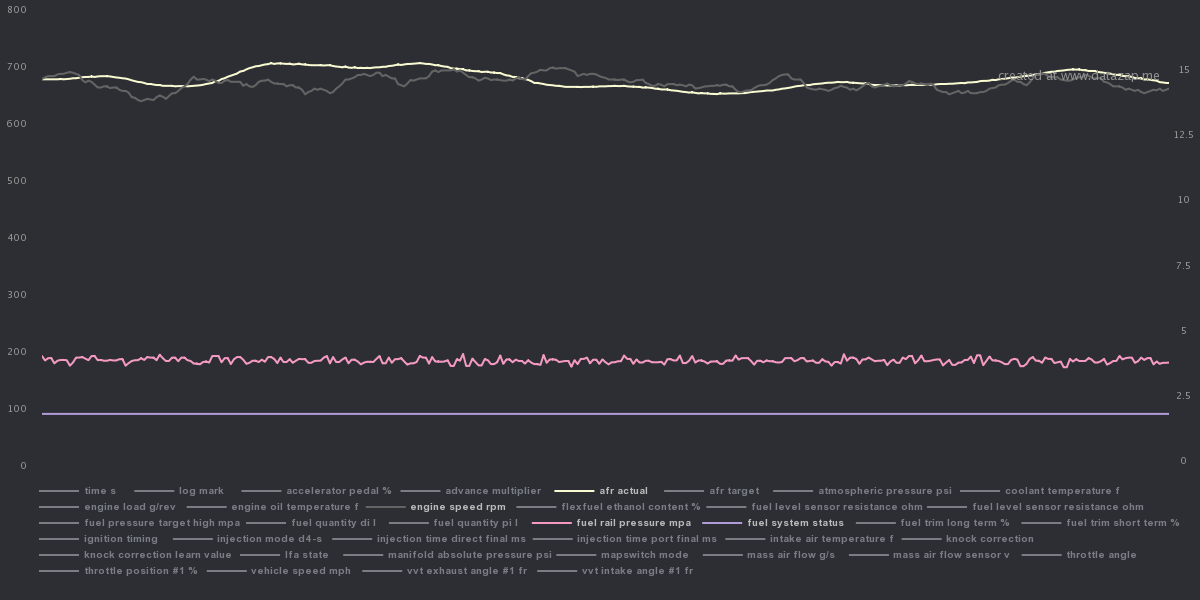 It runs well enough to go closed-loop mode while idling. The trouble starts when it tries to switch over to DI. That is something the ECU does to minimize emissions while idling. It goes into a lean-running mode with only the DI enabled. I wonder if it can't switch to DI simply because the DI rail pressure is not being regulated. That sawtooth pattern seems to me like it's hunting because of inability to control. Since pressure reading is there and seems reasonable, I'd go back to suspecting the spill control valve, or the actuation signal. Again... I've no firsthand experience with this. I'm just thinking out loud about how I would approach the issue.