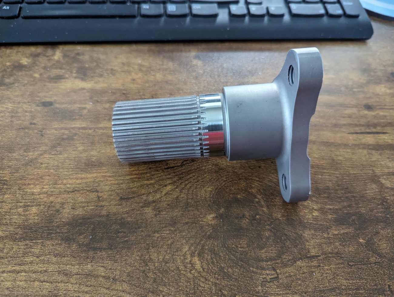 Photo 3: is another of my designs, from scratch, that will mate the Maserati clutch and flywheel, to my driveshaft coupler from photo 2. This is a proof of concept, and does not need to be splined in any way shape or form.