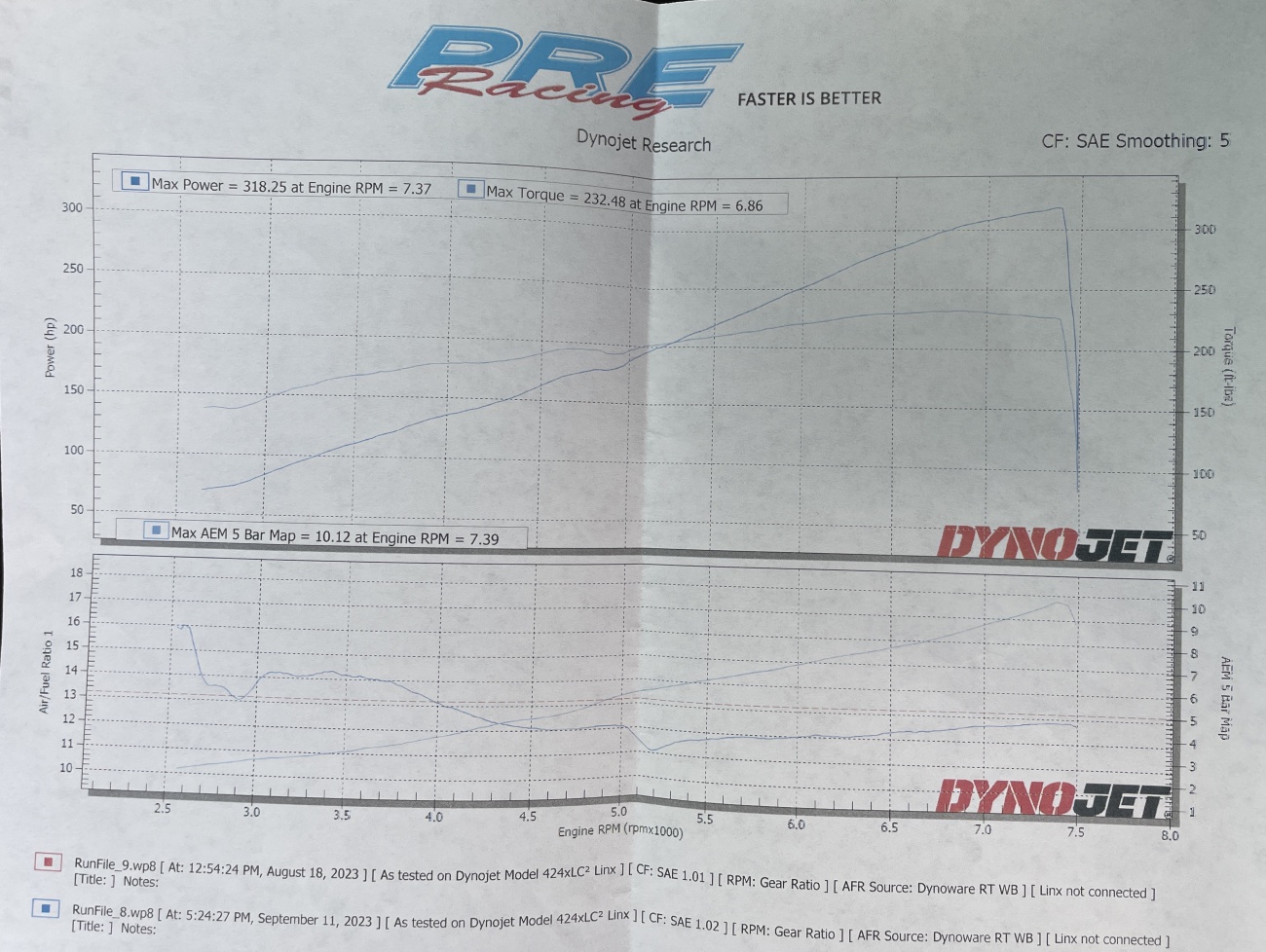 Missed the mustang dyno part. Makes sense when you add 5-10% to get dynojet numbers. Taking the base run numbers and doing back of the napkin fast and furious math also pretty much matches |