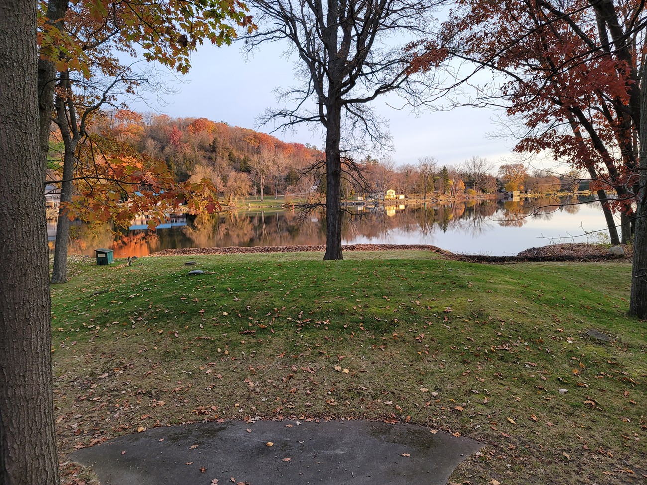 The wife and I just did the yard, AGAIN! Wife used the battery leaf blower to move stuff away from the walls and spread out any piles too deep for me. I go around with my lawn tractor and fill the bins up in a couple of passes. She'll rake large piles onto a tarp and drag 'em down to the old break wall. The baskets that held the stones have all rusted away and the wall is collapsing so we pile the leaves on top and let time turn them into earth. This photo was just a few days ago. There are far fewer leaves on the trees today and the leaves are piled higher on the old wall but I’m too tired to go out a take a new photo.