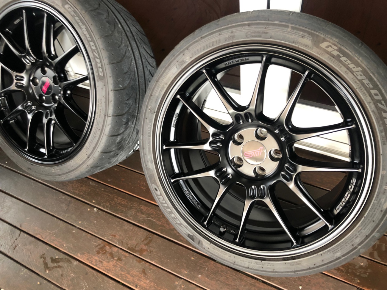 New tires and wheels for the move from summerland to PNW. Apex SM-10RS, 225/45/17 DM06, stock (PP) suspension. I kept the original center caps because they fit the aesthetic better.