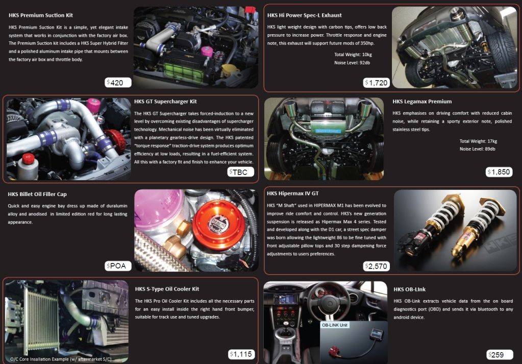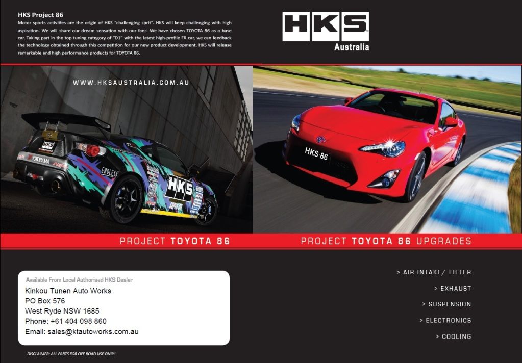 Kinkou Tunen Auto Works is now an official agent for HKS. Please find below the brochures for HKS products for the 86. Many more will be come available over the coming months, including the supercharger kit we've all been waiting for.