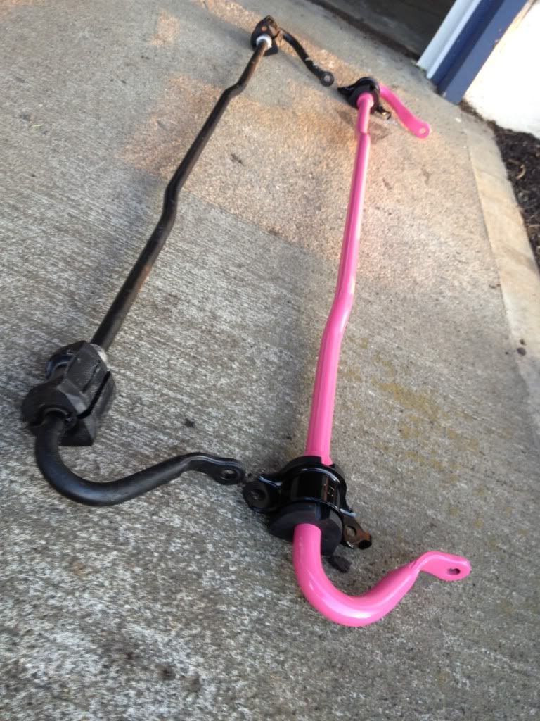 I installed a WRX 16mm Rear Sway bar...Powder coated it Pink (I'm a sucker for my wife) and bolted it in. Took maybe 25 minutes? Car on the ground...and the Nameless Performance exhaust left me plenty of room to work. Driving...With all the Nannies OFF and in Sport mode, she kicks out the rear quicker. Not Crazy, still very predictable, but definitely a change!! She'll slide out with ease when you wanna Drift in an empty Industrial Parking lot on a quit Sunday evening too. Anyhow, I dig the change and the simplicity of it. Enjoy!