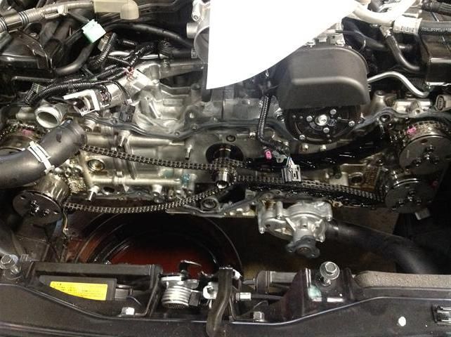 My engine with the new passenger side Cam Gear installed, timing cover removed (waiting for new O-rings)