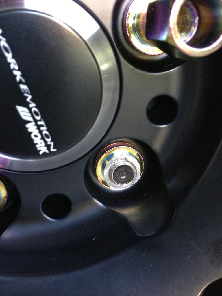 If I was you, I would anyway get longer wheel studs, that doesn't look like its poking through the wheel enough (looks to be only engaging by like 5-10mm) unless its a optical illusion lol
