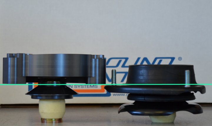 By mounting above the sheetmetal, we are able to let the strut shaft come up through the inner fender, instead of stopping short.