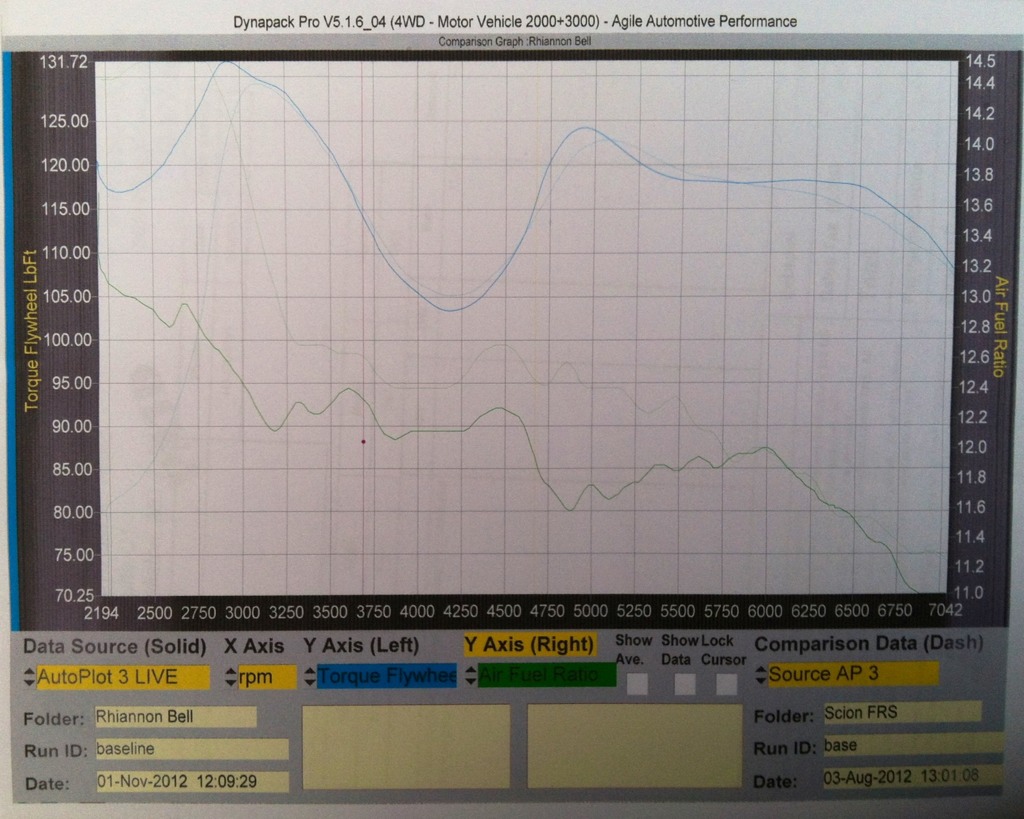 end result, no hp/tq loss where it counts. It dips a tad lower than stock frs but is over a tad in places that matter. (minute differences) Over all I am happy to see the car performs where it should and am excited to get the ball rolling on upgrades in due time. I am always glad to contribute to the useful information we can provide to better inform or 86ers community. Sent from my iPhone using Tapatalk |