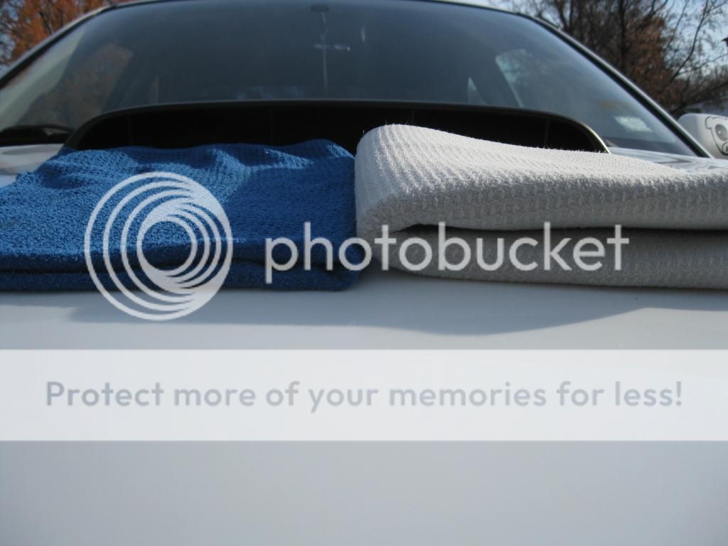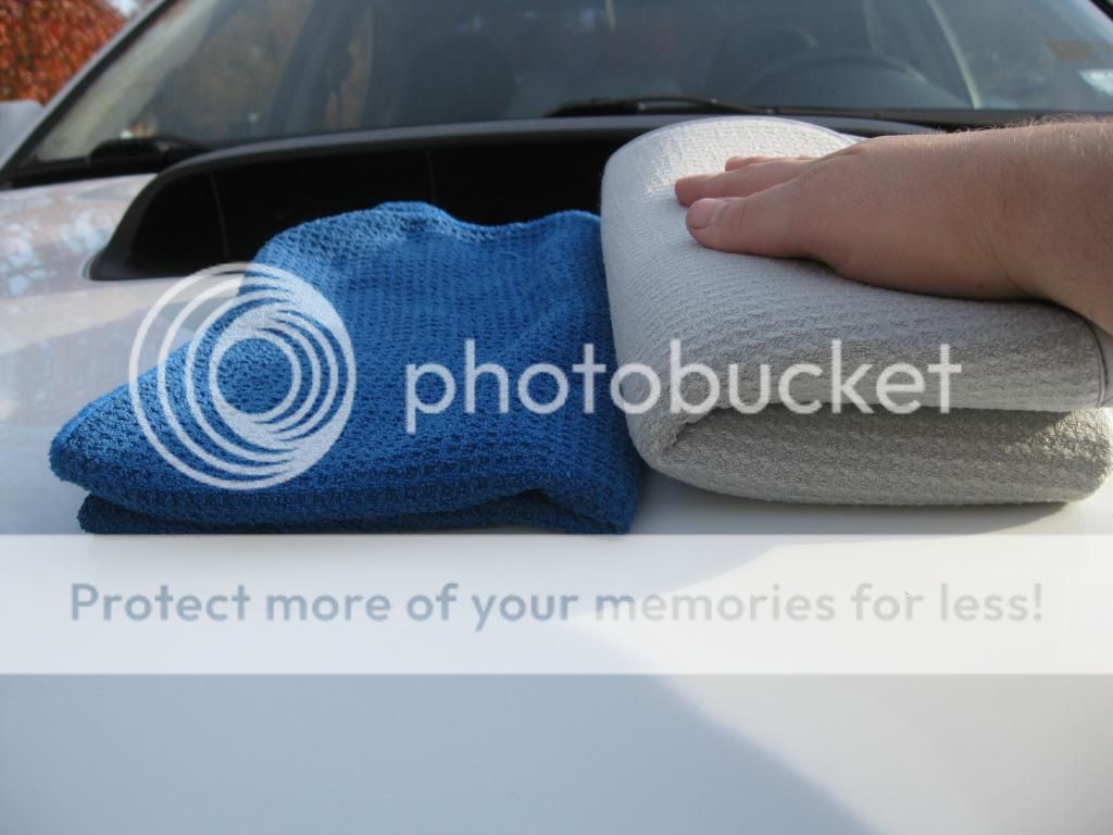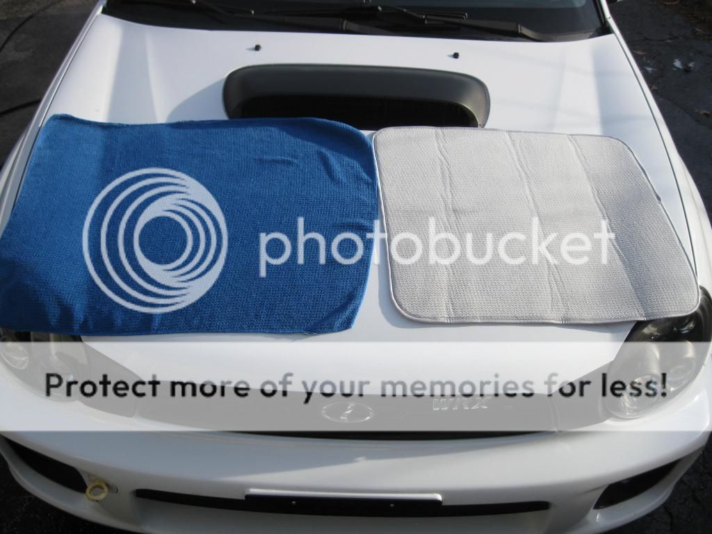 Here is a sneak peak at the towels. Just washed my car with Megs Hyperwash. ![]() Close up on the waffle weave pattern ![]() The blue towel on the left is a generic waffle weave drying towel from an auto parts store. ![]() Close up of both. The grey towel has a very nice silk lined edge ![]() The towels were folded in half twice. The grey towels have a foam core and are seriously dense. Which does an amazing job at soaking up water. ![]() and then they were folded over once more. I had to hold the towel down from springing open. Its a brand new towel so its still a little stiff ![]() and just a couple pics of my wrx after the wash ![]() ![]() ![]() -Seth |