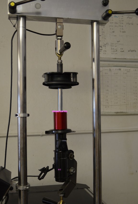 Front FT86 strut and upper mount being tested on our in house shock dyno for deflection of the upper mount.