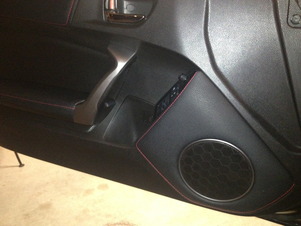 Nah I installed the leather speaker panels with read stitching and the silver ring around the speaker! Looks so much better and feels a hell of a lot better on my knee than the plastic ill post a pic of the finished product in a few!!