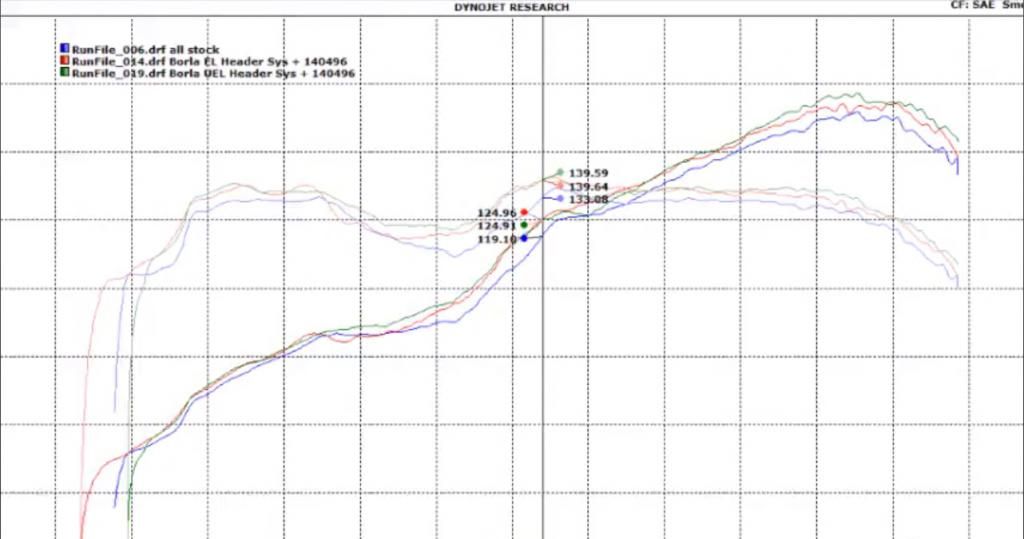 The most notable difference is in the dip area, I'd say that by itself is worth looking at. The top end stands out less, but I don't imagine a header alone will see large gains while leaving the major restrictions still in place. I'd think most people doing a header would be adding it to an already modded car.
