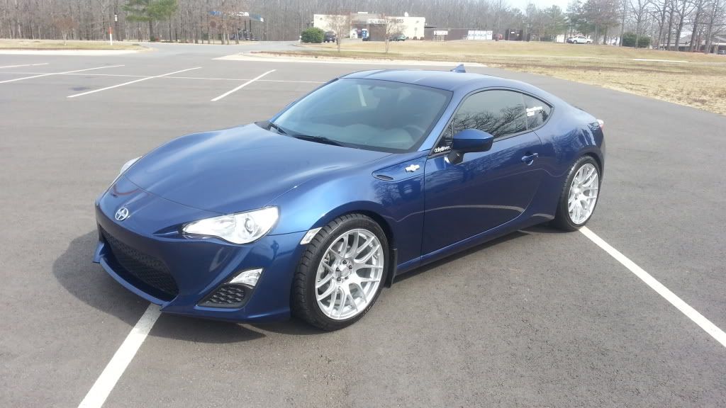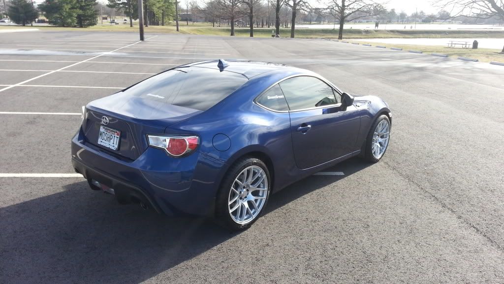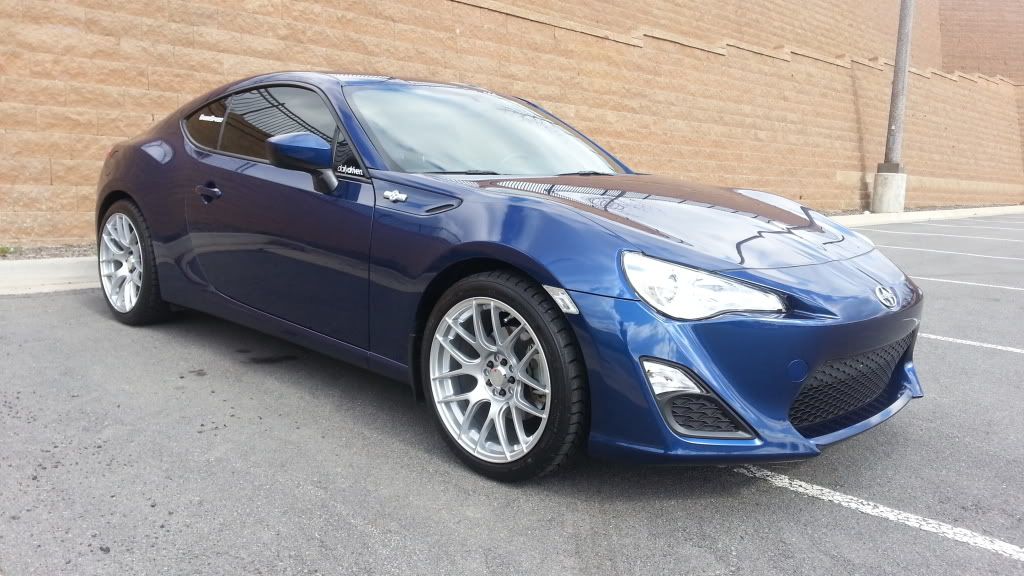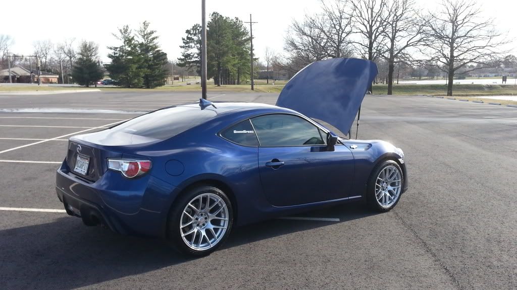 So, I finally got Frances some new shoes! I know it's been awhile since I updated this thread, so I should probably get you up to date on her progress. So far I have installed a bunch of GrimmSpeed parts under the hood, including the billet "86" oil cap, aluminum battery tie-down, brake master cylinder brace, and a set of amazing hood struts. But today was the big day: XXR 530 wheels in Hyper Silver wrapped in 235/40-18 BFGoodrich g-force Sport Comp-2 tires. I also have a set of Eibach Pro-Kit 1" drop lowering springs ordered, so the wheel well gap's days are numbered.