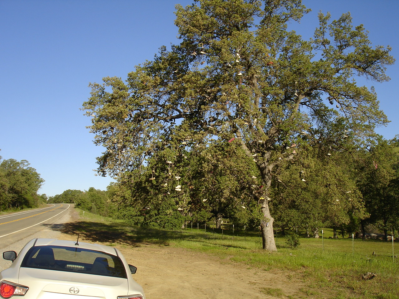 Finally got up to SR 36 from Red Bluff to Alton on the coast. Decided to take on SR 96 as well in one day. Didn't sleep well thinking about it and got up about 5:30. This bit me in the butt later on. Anyway: THE SIGNPOST ![]() 36 starts out twisting right away. Have to cross a pretty wide plain before the mountains start proper. It's not flat though. Looks like they didn't do a whole lot of cutting and filling, but followed the landscape wherever it went. Lots of abrupt dips after which the road might decide to go off another direction immediately. Don't try flying them. ![]() Found this Shoe Tree along the way. There was another on on the wet side of the pass, but it didn't appear to be as fecund. ![]() SR 96 from Willow Creek to Yreka follows the Klamath River upstream. Seems to be comparable to SR 36 as far as corners and surface. Likely because the same people built and maintain the two and they follow the same sort of terrain. 36 is just longer. What I found really strange was that I perceived the road to tend downhill a lot more than uphill. I could see the river flowing opposite to my travel, but it seemed that I was decending. Must be a ginormous concentration of dark matter around here, or Hwy9 slipped some in my trunk. 8) ![]() Sleep deprevation caught up with me and I was starting to nod off again. Took an hour of down time in a shady turnout. Felt much better after that. Got to Happy Camp to get a shot of the Yetti. ![]() Finally joined up with Int 5 and headed out of California to Oregon. Ashland tonight. Think I'll take the boring route and finish up with this report. Going to head home tomorrow. Catch up with unfinished lawns and gutters. I hear it's still wet up there. Might try out 96 the other direction sometime next year to see how it works that way. Can check into SR 3 then to see what that's like. Exclusive update: Nose Goblin collection May update again when I get back home if they don't wash away first.