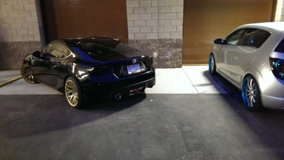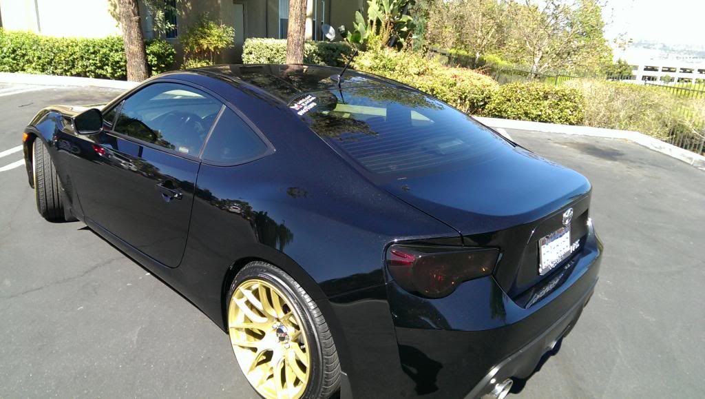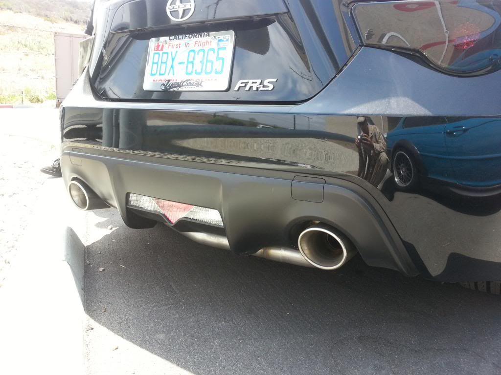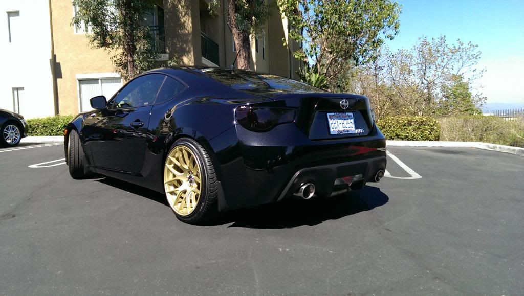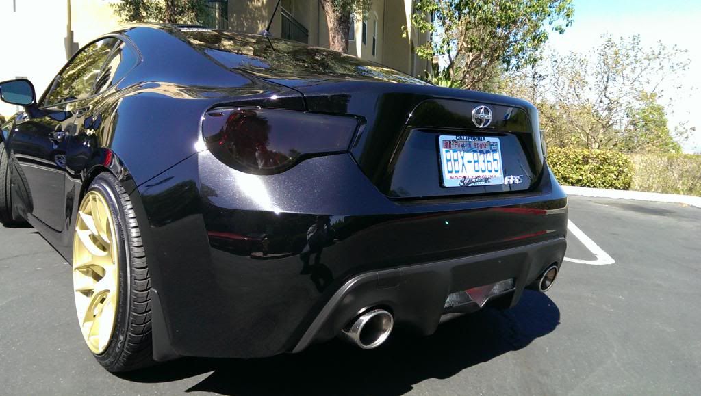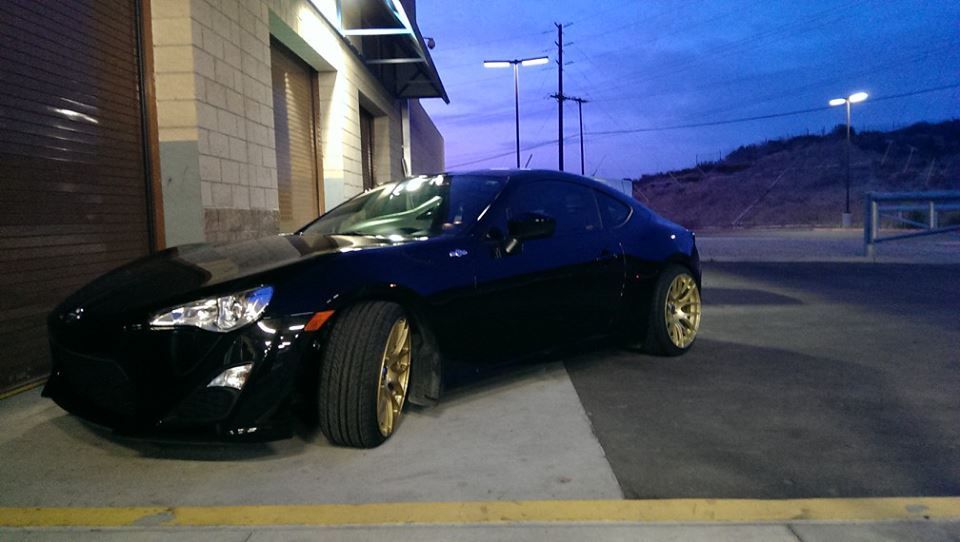 Basically going to keep my hopes up and not lower my excitement to see the finished product. Granted I don't even know who XXR or Megan racing is but who knows. They might have decent products. The XXR's in their 18" 9.5J trim weigh 21 pounds each which is the same as everyone of Gram lights products. I would have went Volk because they make an 18" wheel that is only 15 lbs each but that is just my way of wanting less weight. That is for the future. I have no idea about the XXR strength also so I guess we will see later when I get back how they handle on the track with rigidity and flex. As for the Megan Racing coil overs they are 32 way adjustable but that is pretty much all I know. They do have some applications on some other drift cars. I want to see how they do on the circuit. Spring rate seems right if you go to their webpage. The dampening is easily adjustable. Just gotta find my happy setting depending on the track I go to. Takeda is a good intake but the amount of RPMs you have to hit in order to see a gain is 6530+. Takeda does not increase lower RPM hp or torque which is what is sorely needed in the FR-S per reviews. I think there were like one or two intakes on the market today that actually increase low end hp and torque. As for the exhaust I honestly have no idea who makes it. Trying to get the Marine that has been taking the pictures for me over there to look at the exhaust again. I am willing to bet it is also Megan Racing just because WCC works out combo deal with manufacturers for a better price. All I know it that it sounds good and I like the stance. The blacked out tail lights give it a nice touch also. Not that I really care about cosmetics but it is a nice touch. No one sees any hidden TV's in any of the pictures right? lol.