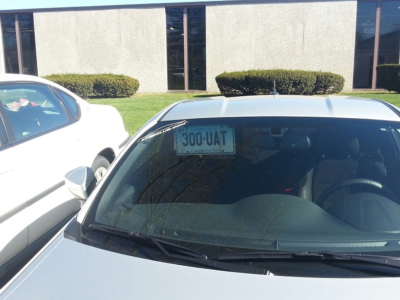 I looked at CT DMV website and it doesn't say where front plate has to be. So my "ghetto" set-up is technically legal!!!!!!!!