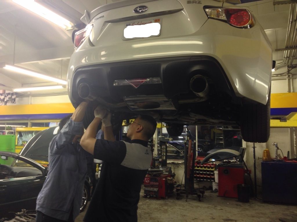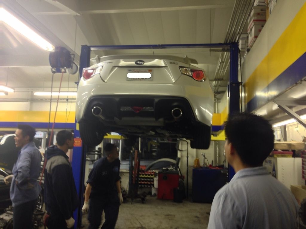 Then next up was @clzzical's BRZ. He came in to put on his Greddy exhaust. With a team of 3 guys on it, they had his old exhaust off and new exhaust on in even less time than it took for my oil change. I'll let clzzical talk about how he likes his new exhaust.