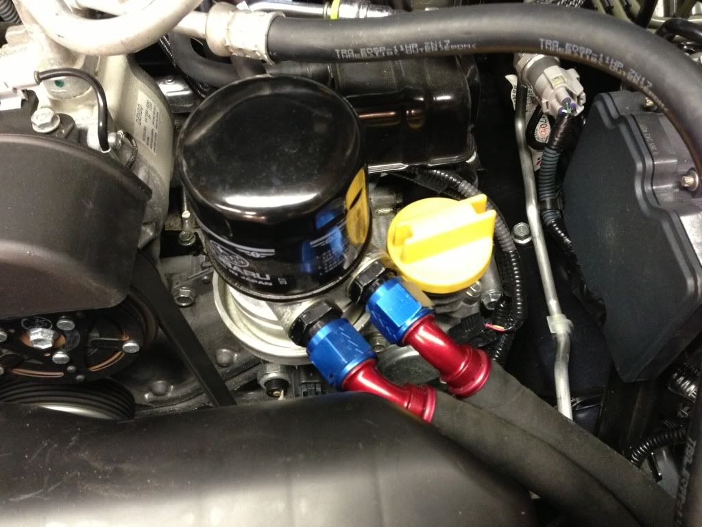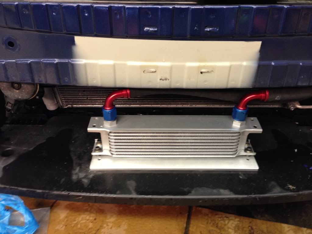 I installed my oil cooler today. It took about three hours which is far less then I spent researching and designing it. In normal freeway driving I'm seeing about a 25 Deg. drop on oil temperature, and 10 Deg. drop in water tempeature.