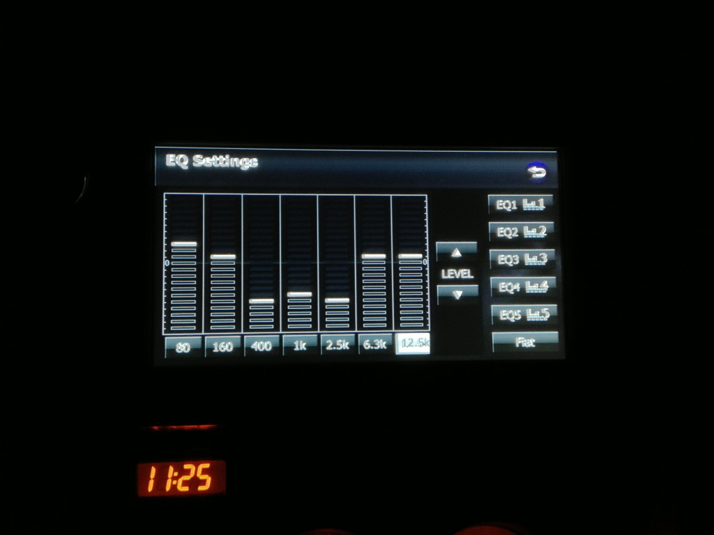 I can't do anything about the low bass response. You can clearly hear that 40-80Hz range is overboosted. If you see the fall off, that is 100Hz, meaning attempting to further adjust 100Hz will either overboost the low end (wide band filter) or over cut 100-150Hz range. There is a bit of a gap around 200Hz, not much I can do about it with just the head unit. Also a small issue in the lower midrange (500-600Hz), but again, nothing can be done. Also, most people won't hear that. The upper end is as flat as I could make it. There is a minor gap from 3.5-5KHz, but adjusting the 6.3KHz slider or the 2.5Khz slider hurt more than it helped. The results as you can see are FAR different from what avholic came up with. I'm not sure the hardware used, but here is my setup. Pink noise generation by RoomEqWizard V5 (Google Home Theater Shack if you want this) Alesis IO2 USB phantom power interface. This does the A/D and D/A so the PC sound card doesn't have to. DBX RTA-M. Reference mic used for RTA and sound analysis. Once I had this EQ setting, I'm now at the edge of what I can do, as for better sound, I'd need better amps, possibly better tweeter, and much better tuning capability. I do not want to add weight to the car, so this is a challenge. EDIT: The rears sound like shit. You'll see the way I dealt with that was to use F2 for fader settings. This will absolutely effect the response curve, as I had a different curve before I added F2 setting.. As for R1 vs R2, that's personal taste. I used R1 because I found R2 attenuated the left channel too much, while R1 is close, but not enough. Last edited by ean611; 04-13-2013 at 12:00 PM. Reason: forgot detail |
